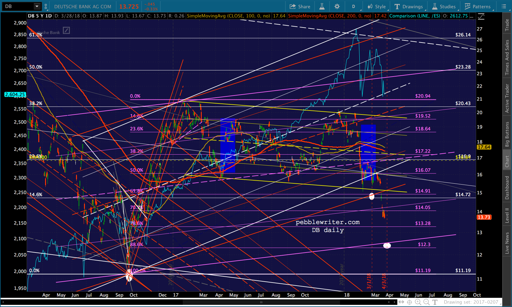 If the midline breaks down, then there’s not a lot of support except the purple 1.618 Fib at 2335 before reaching the 1.618 at 2138.
