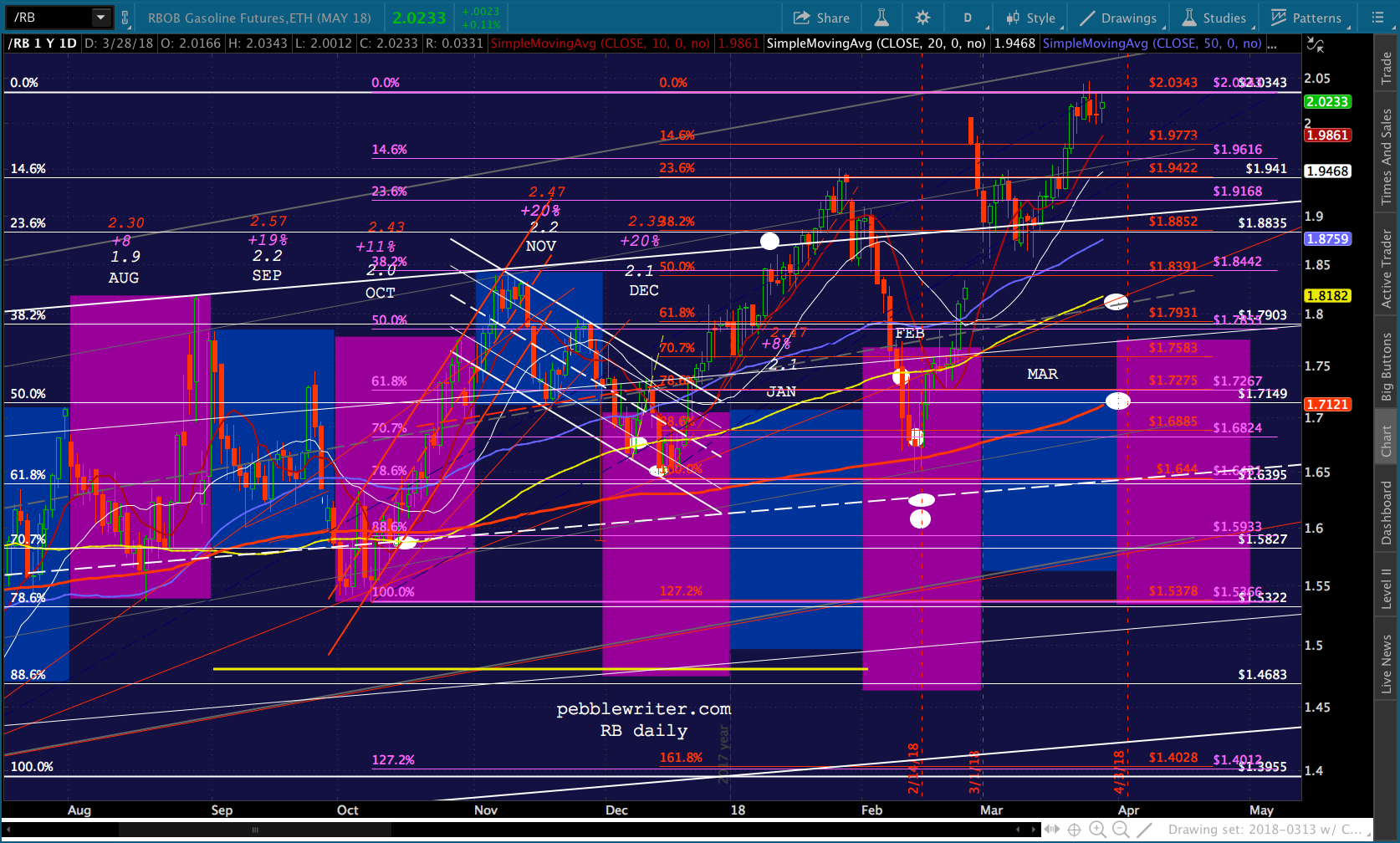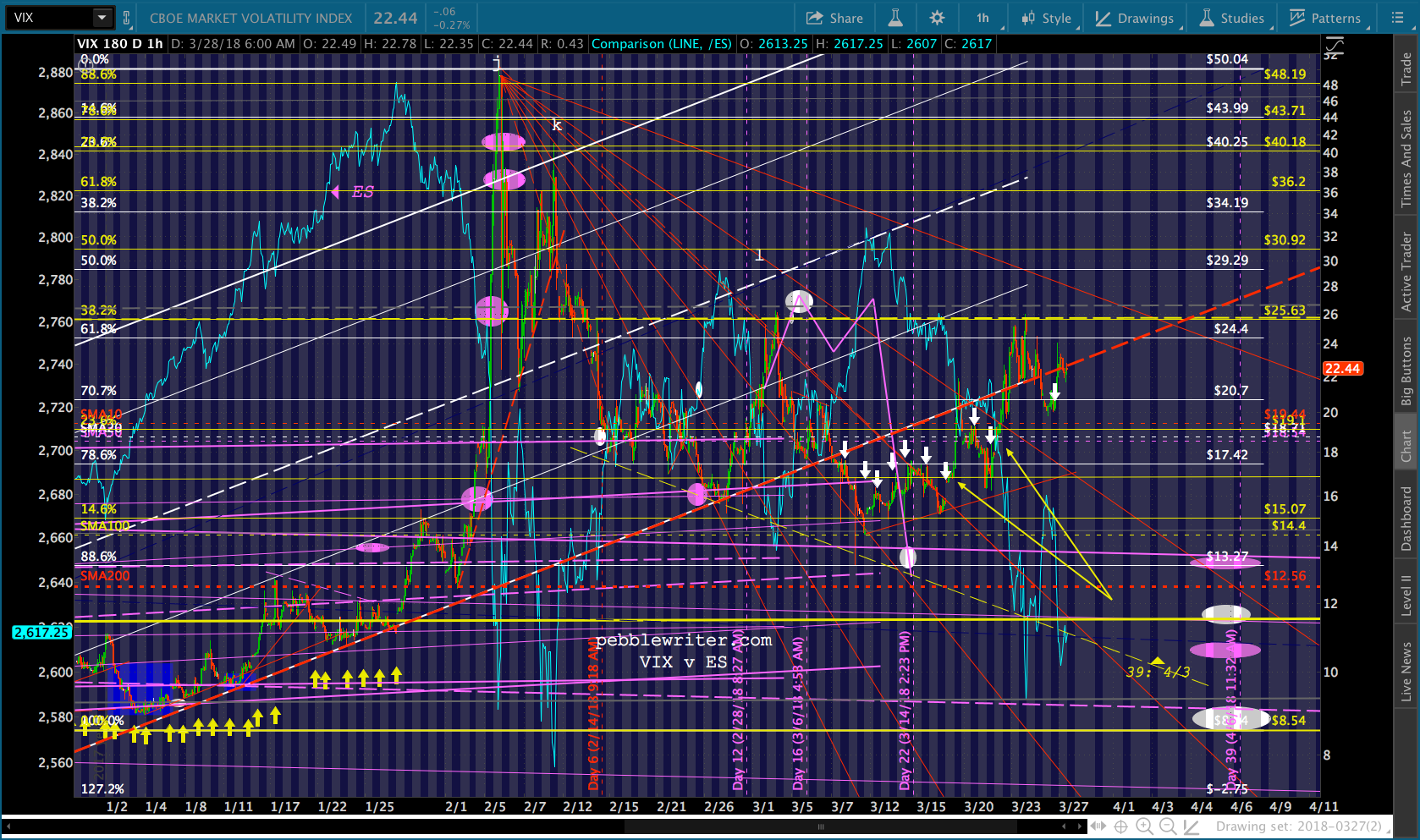 At present, of course, the next lower major Fib level is the 1.618 at 2138. We never had a proper backtest of it. The purple .236 line passes through it in mid-April (ideally, Apr 13, right after CPI confirms stagflation?)