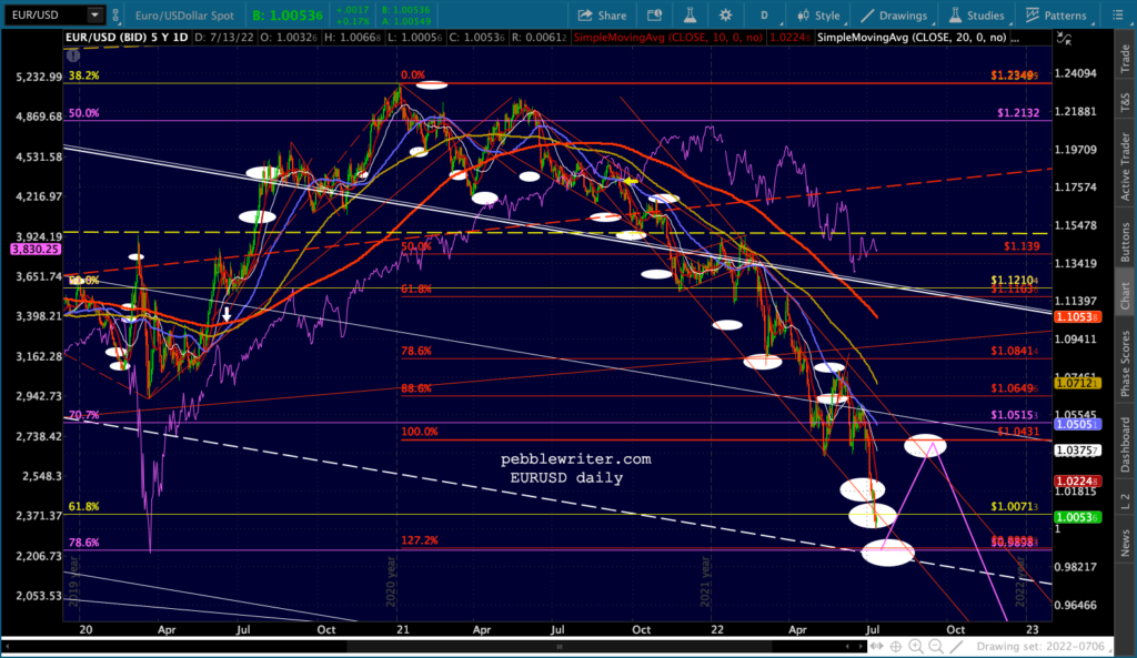 The key chart in currencies remains the euro, which is poised to dip even lower below parity with the dollar.