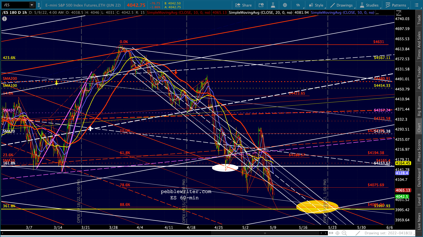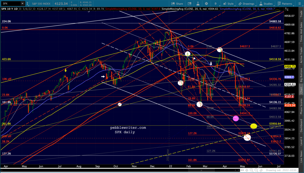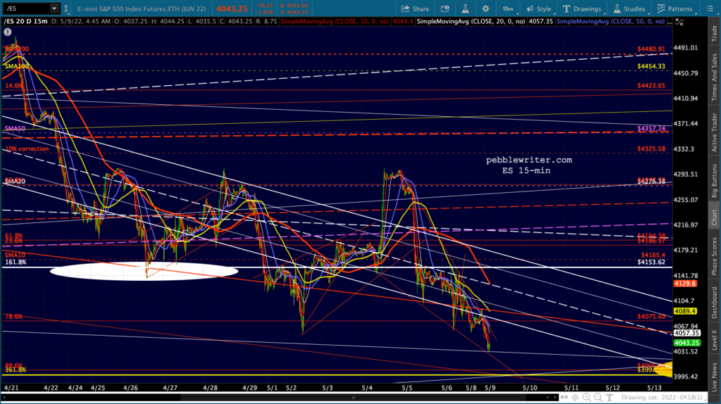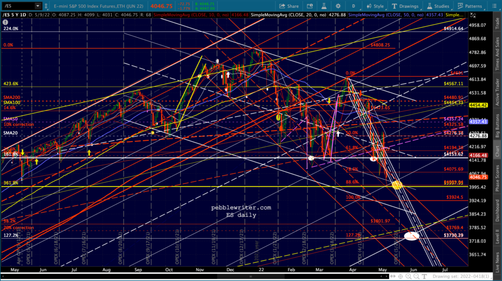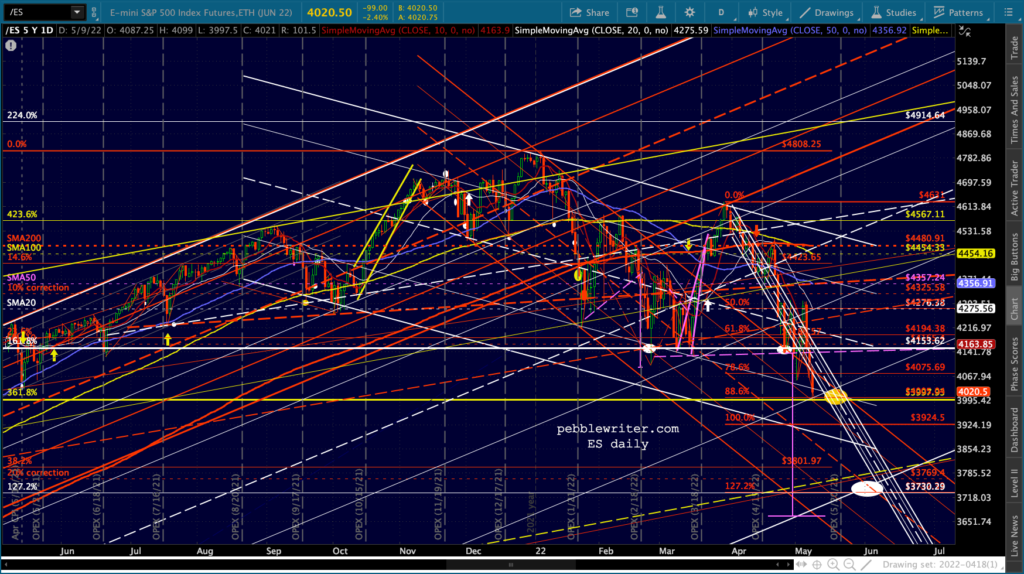 The initial bounce should be solid – ideally to at least 4075 and potentially 4153. If it doesn’t bounce here, we have three primary downside targets: ES 3924.50, ES 3667, SPX 3956.64 and SPX 3855.
