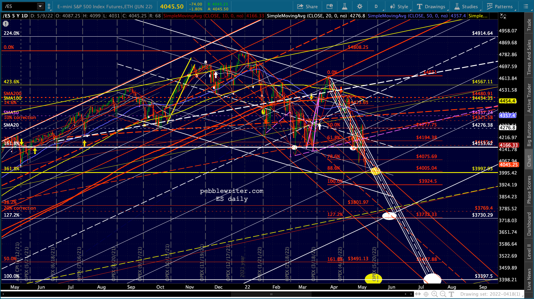 ES has reached 3997.93 – the 3.618 extension of the drop from 2007-2009.