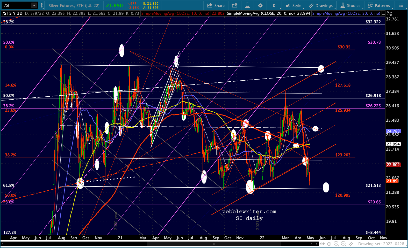 It’s silly, of course. What they mean is that they didn’t see it coming. Plenty of others did. Some, like us, saw it months ago. This was our Jan 3, 2022 ES chart, illustrating the downside case.