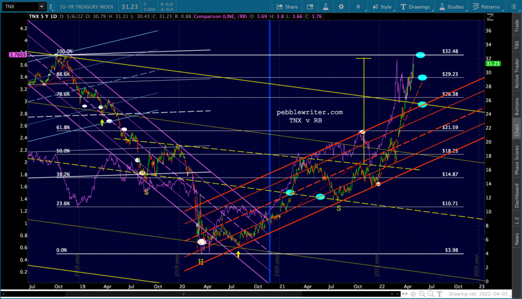 Though off modestly this morning, CL and RB are still elevated, with RB in particular threatening a breakout.
