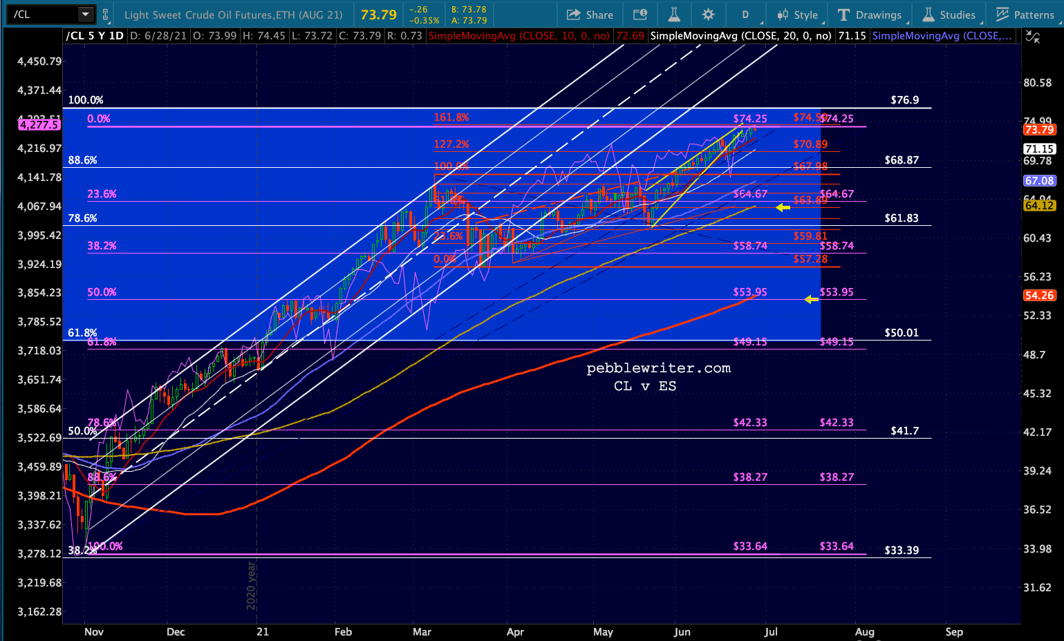 June 21 should have been the day we saw a bearish 10/20 cross in ES yielding a backtest of the 3.618 Fib extension.