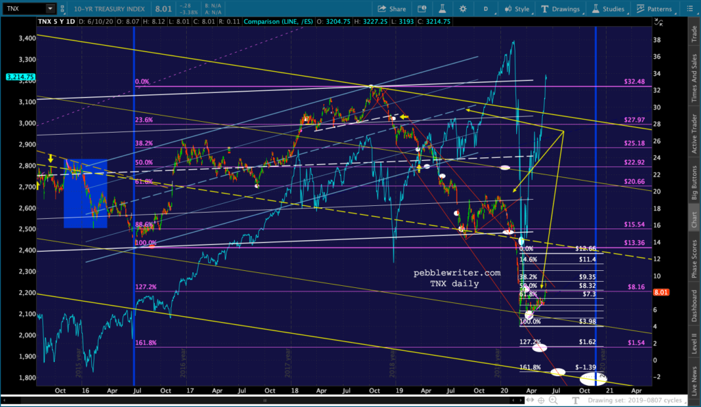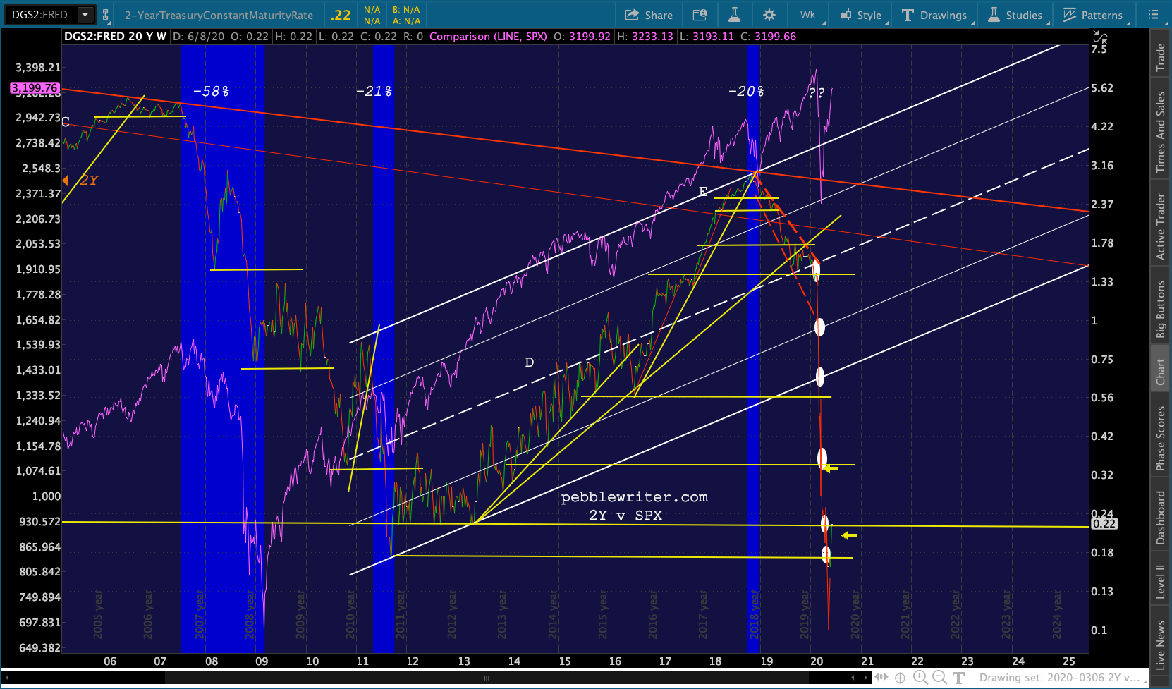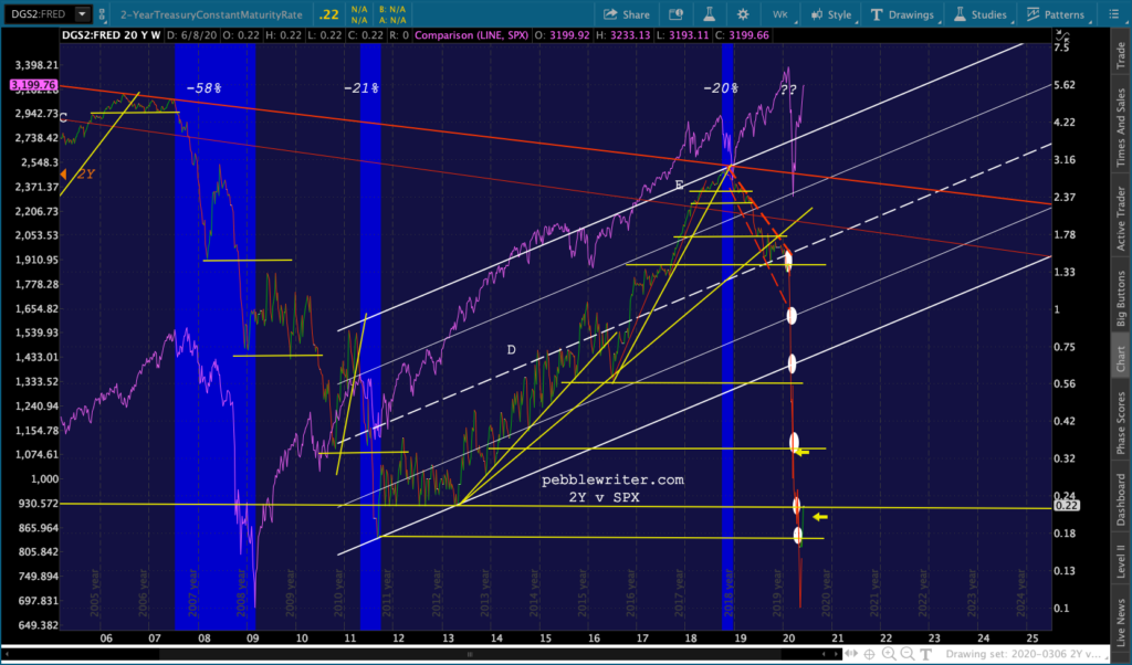 My charts still call for much lower rates which would presumably be driven by another equity shock rather than FOMC action. But, I would not put it past the Fed to do the math and see that negative rates will be required at some point – just to keep the house of cards from collapsing.
