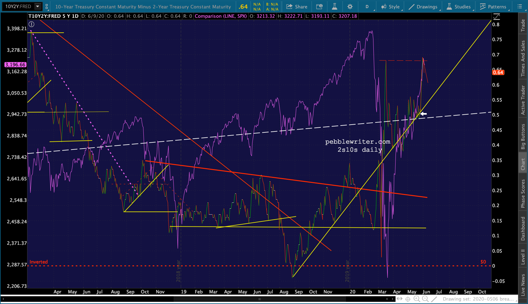 The 2Y has rebounded from May’s 0.10% intraday lows but has failed to retake the 0.22% resistance.