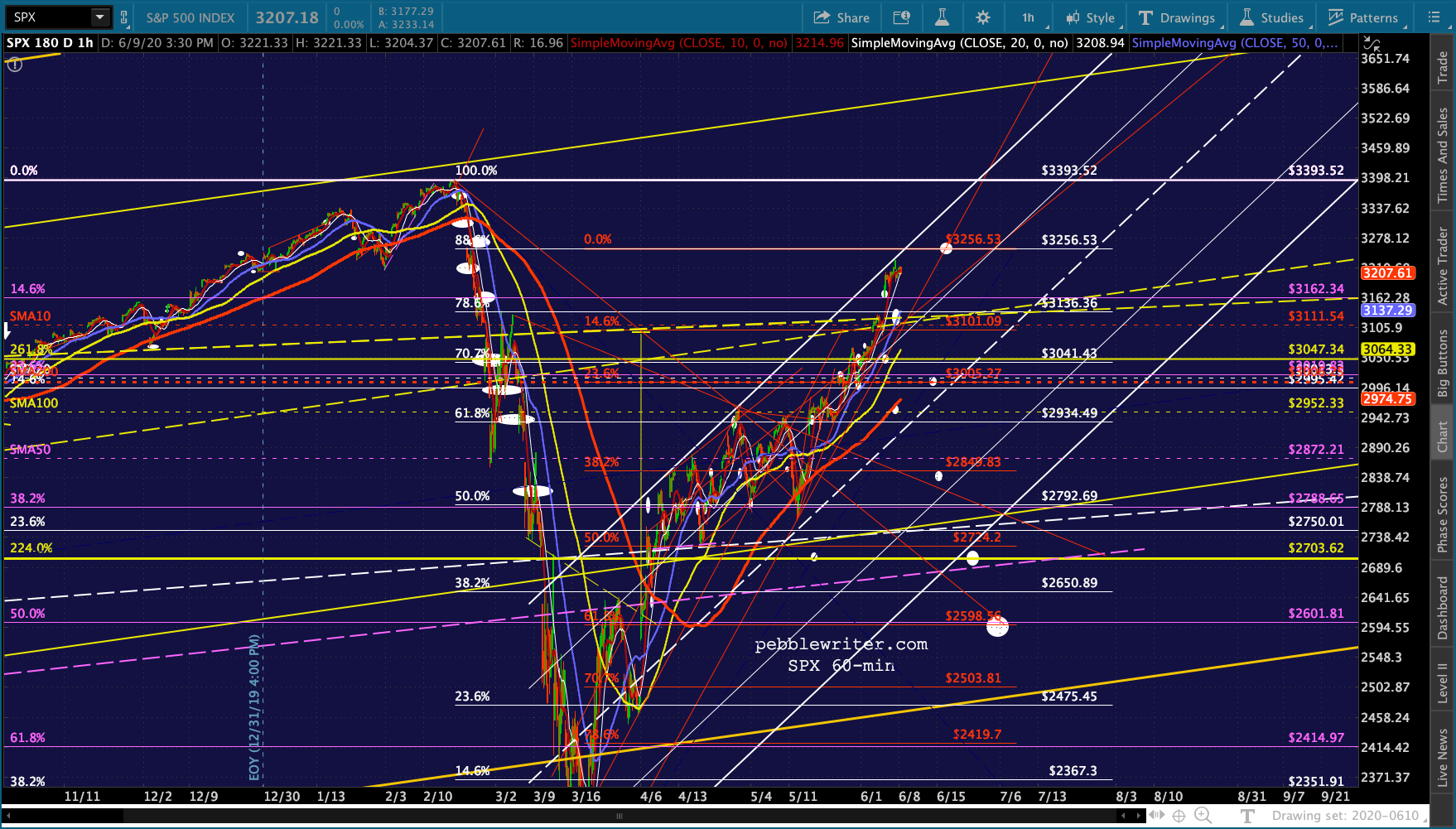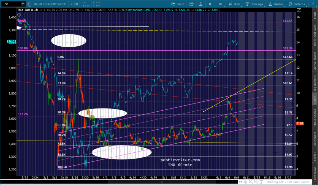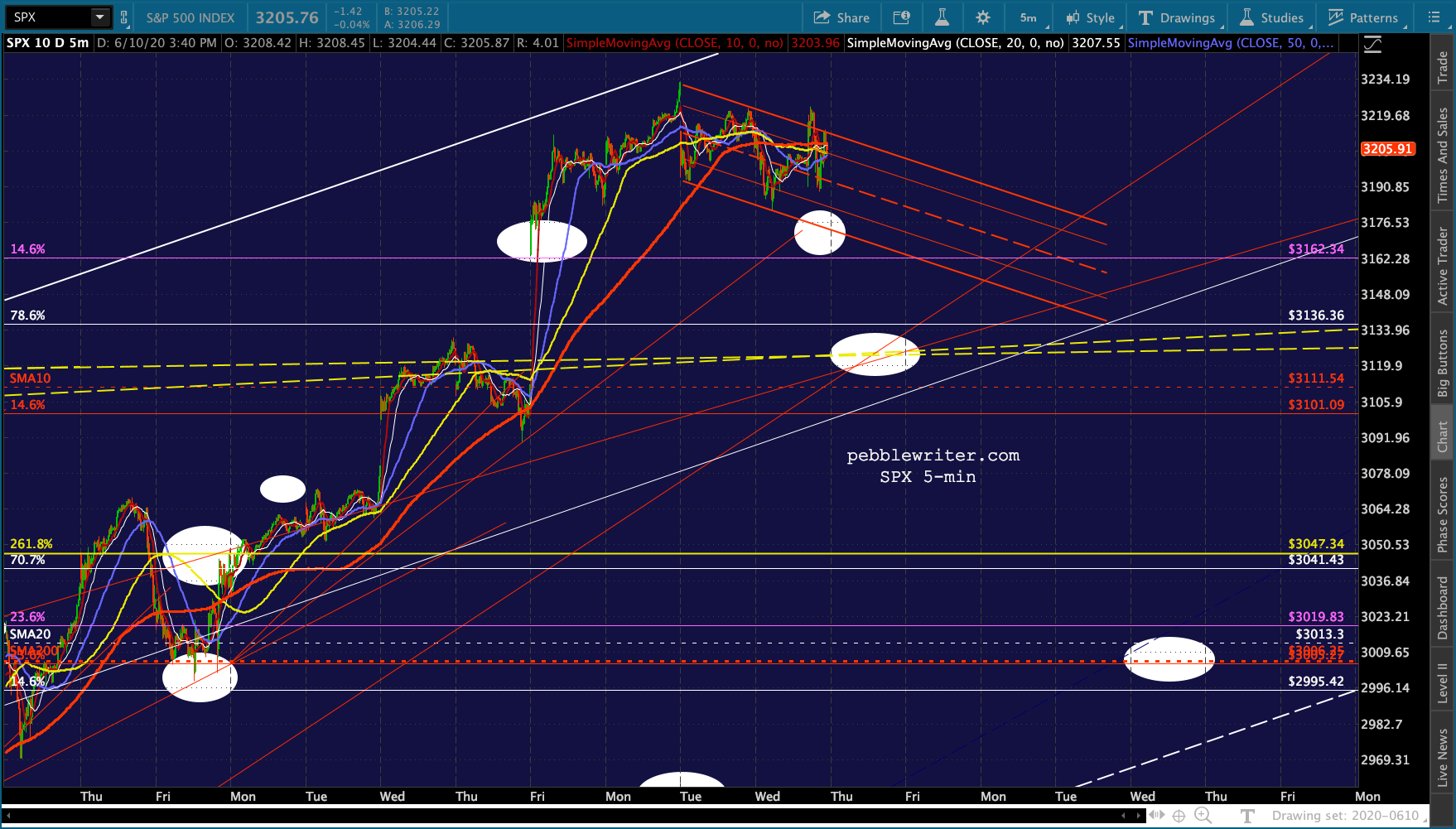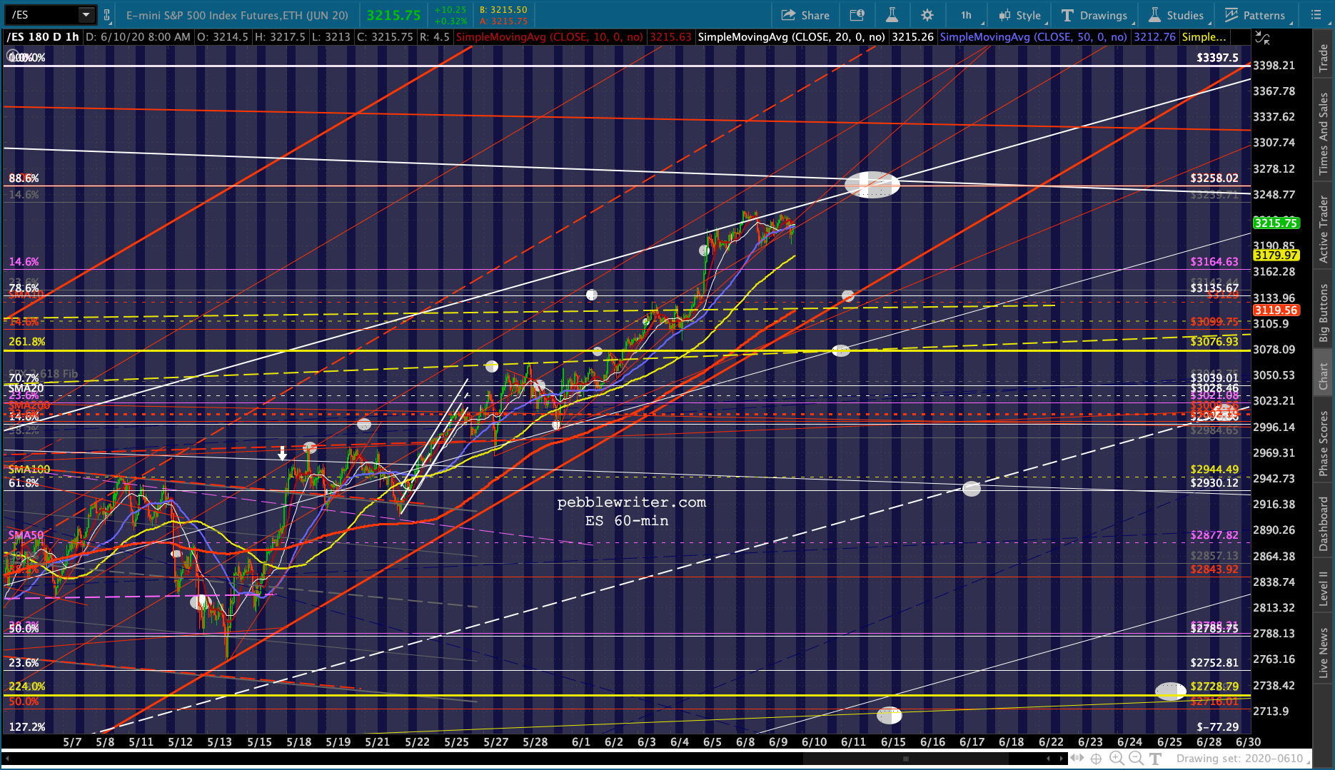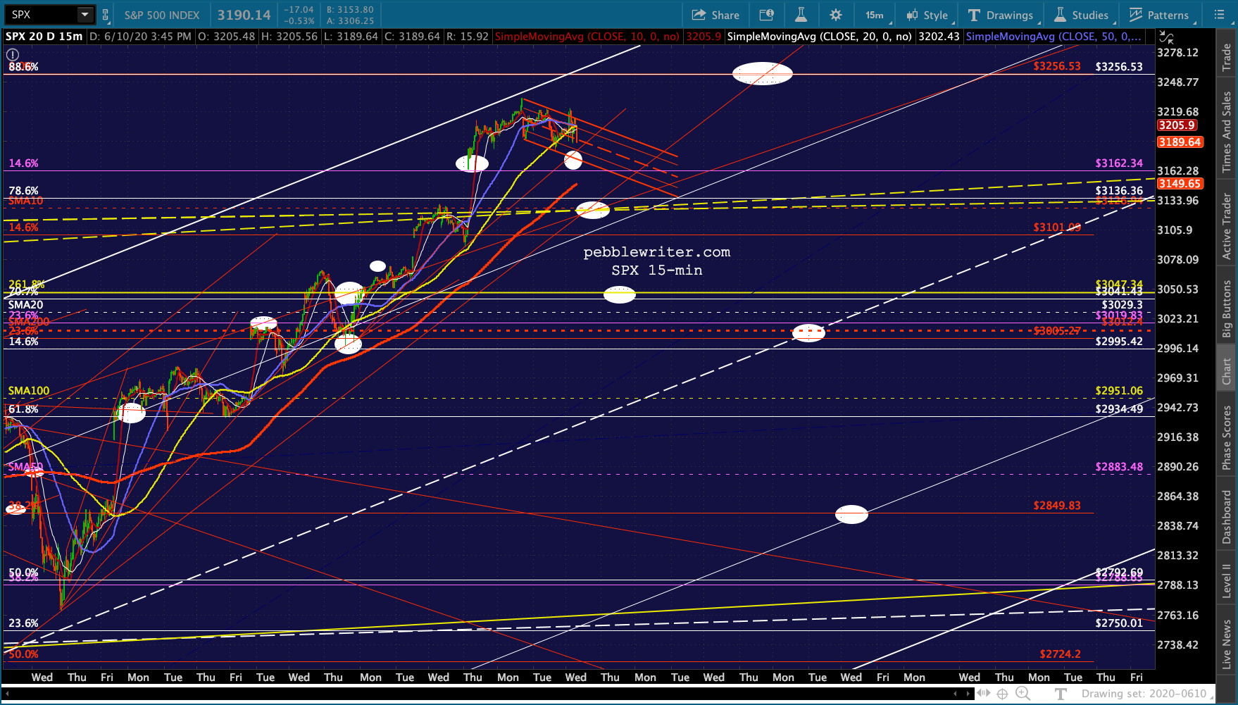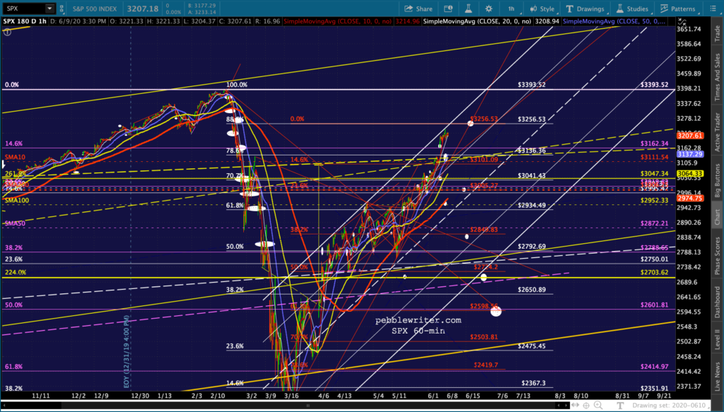 I’m leaning toward a correction beginning today, but am unsure whether the channel bottoms at ES 3076 and 3122-3135 will hold or not. It depends a great deal on what Powell says later today.
