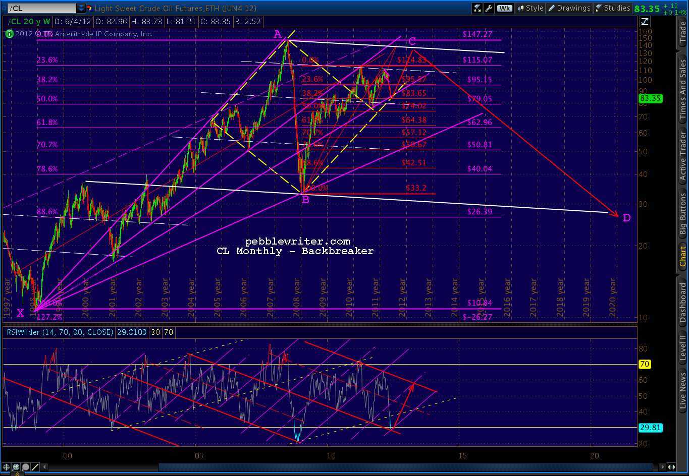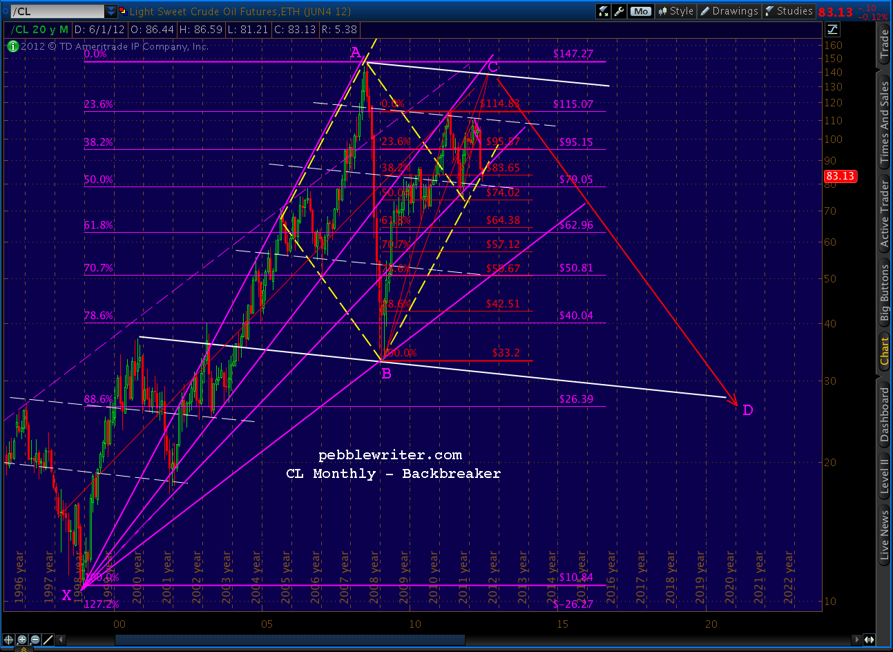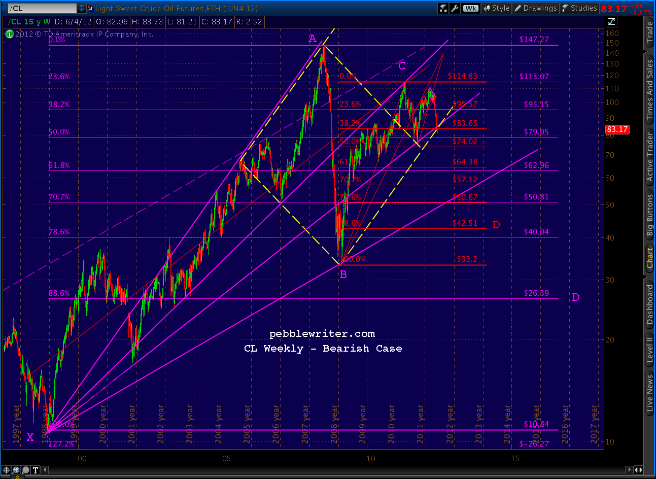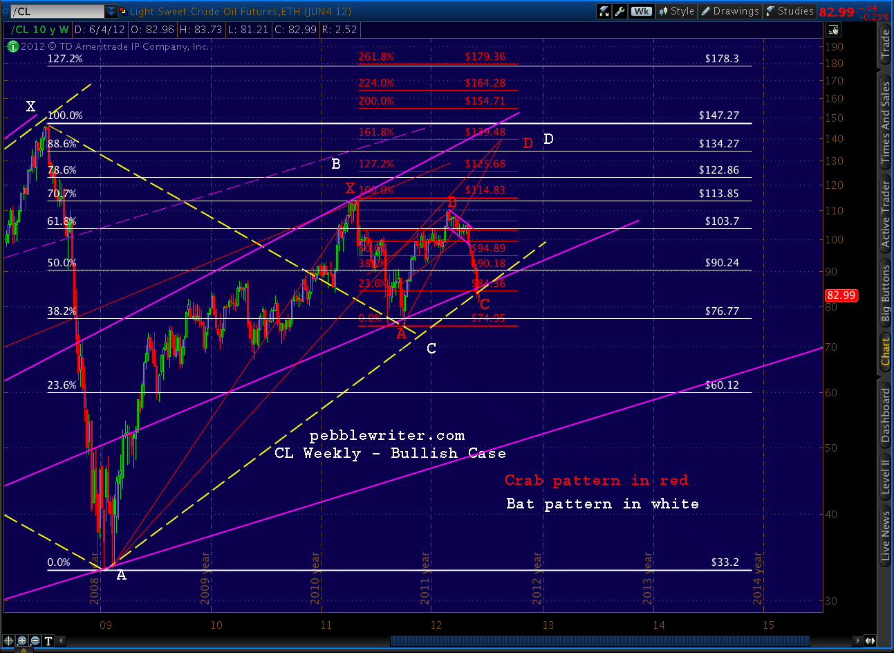 My top case — a real back breaker — is that we see the Bat and Crab patterns complete on the upside, establishing a higher Point C in the 134-139 range around March-April 2013. From there, it should be all downhill — as should the economy after many months of $120+ oil.