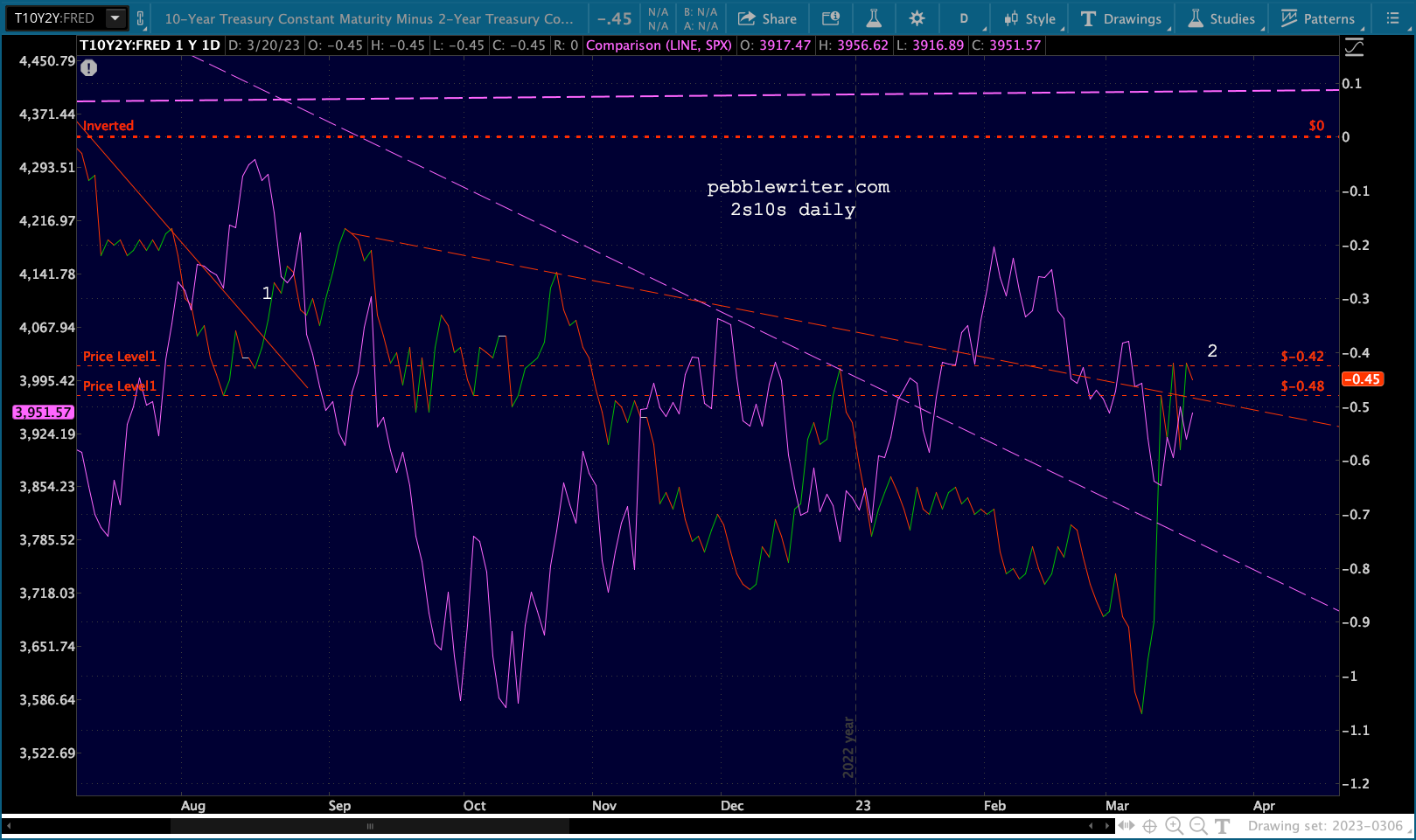 This means the 2s10s is at a real risk of breaking above resistance (less negative)…