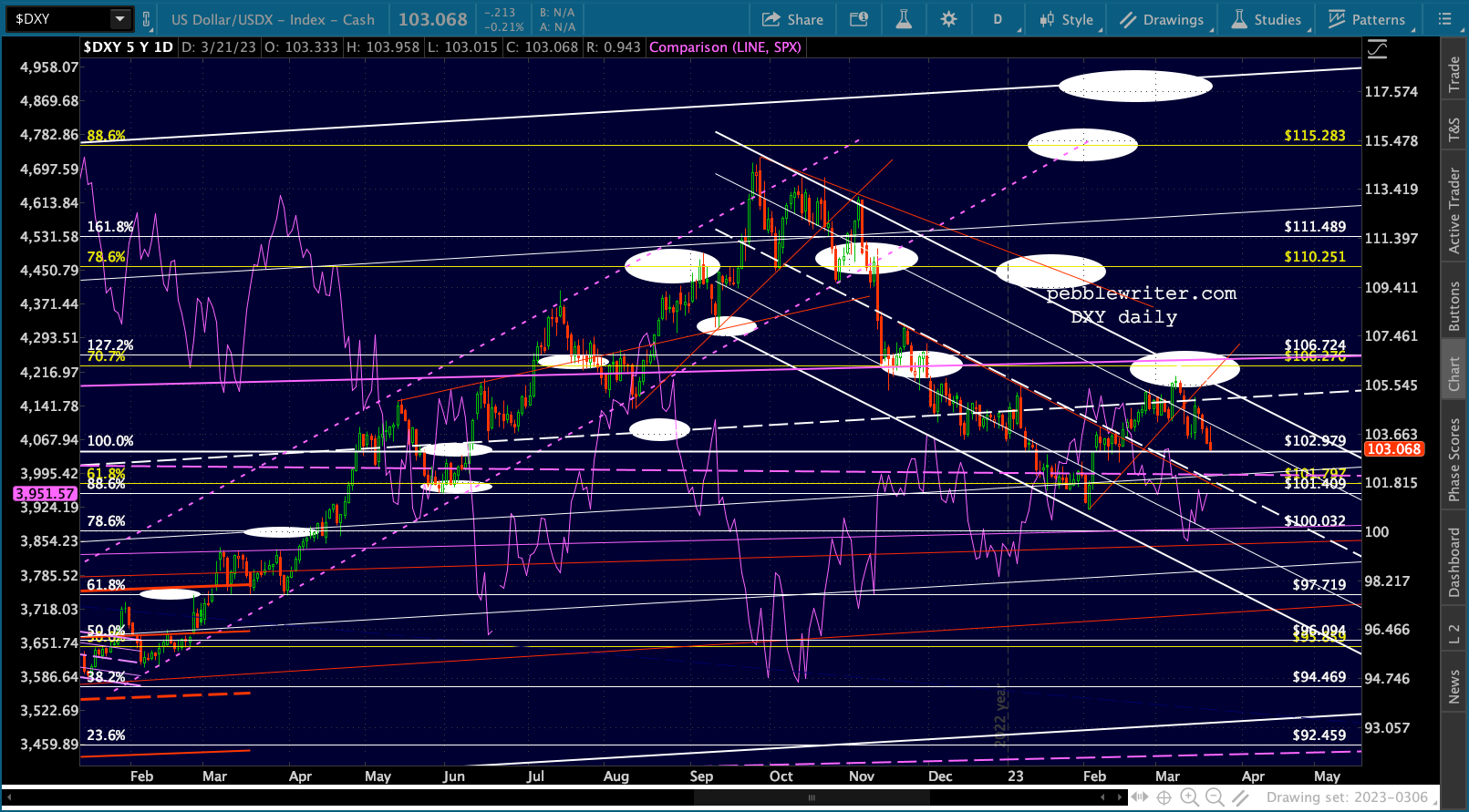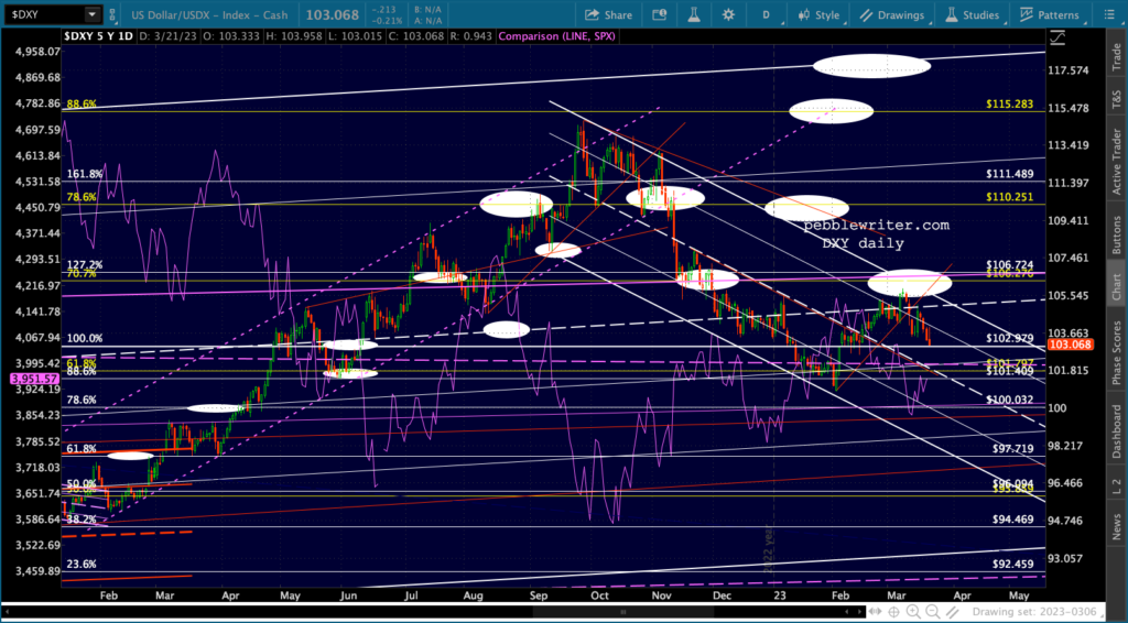 The EURUSD is still providing plenty of cover, while USDJPY continues to slip lower. Net effect is a weaker DXY which helps out stocks.