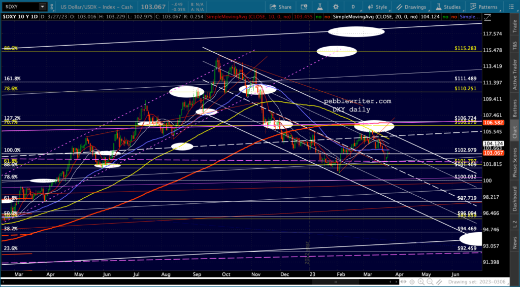 Currencies are all in for stocks this morning, with DXY backing off and GC getting hammered.
