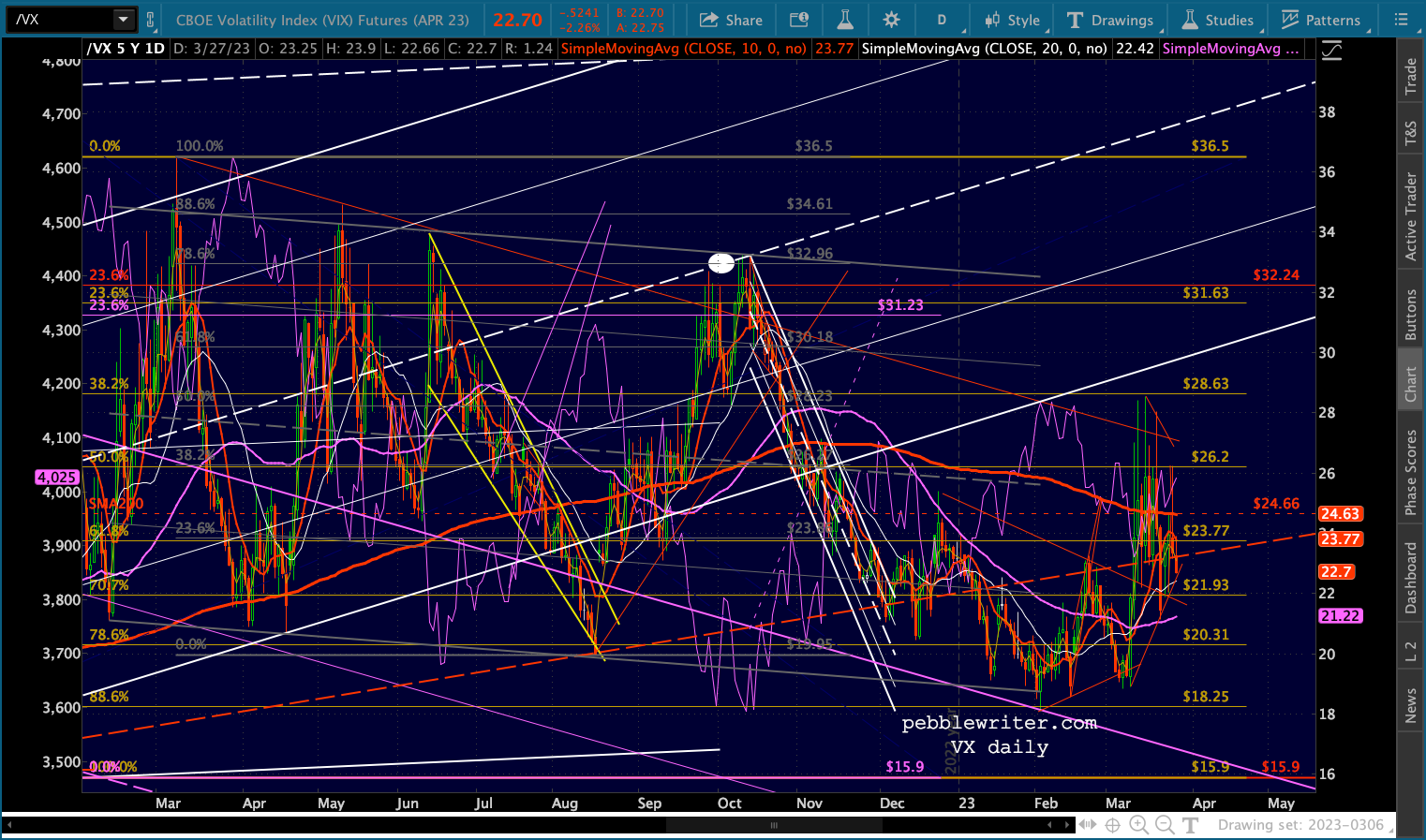 VX is coiling, also suggesting that a breakout or breakdown is just ahead.