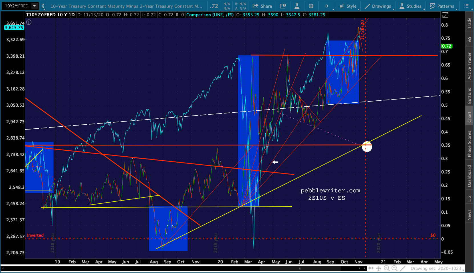 This, of course, follows the bearish (bullish for stocks) 10/20 cross and channel breakdown we anticipated last week.