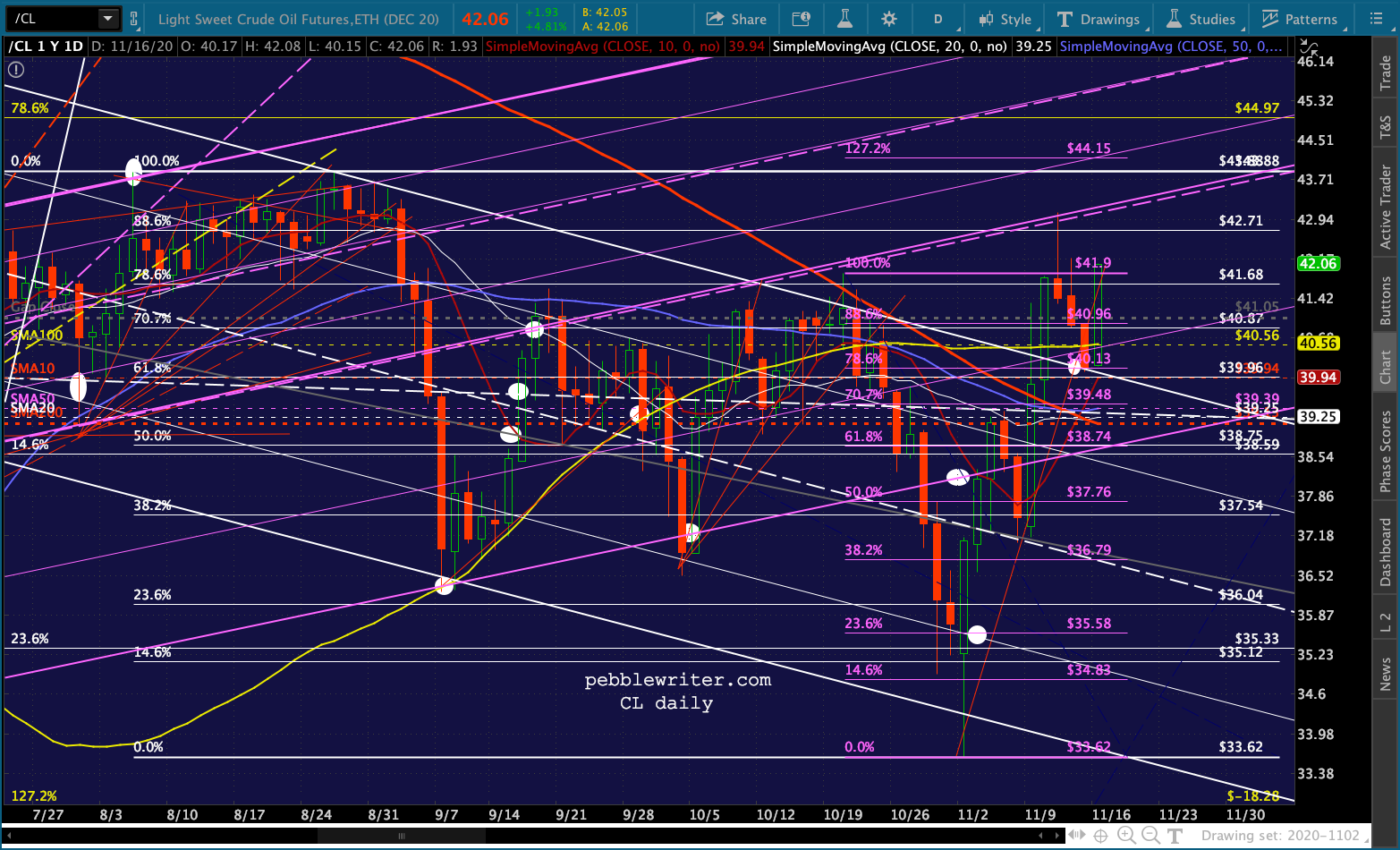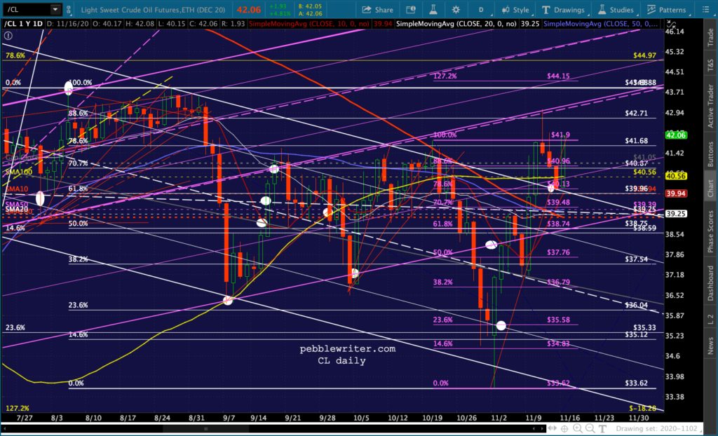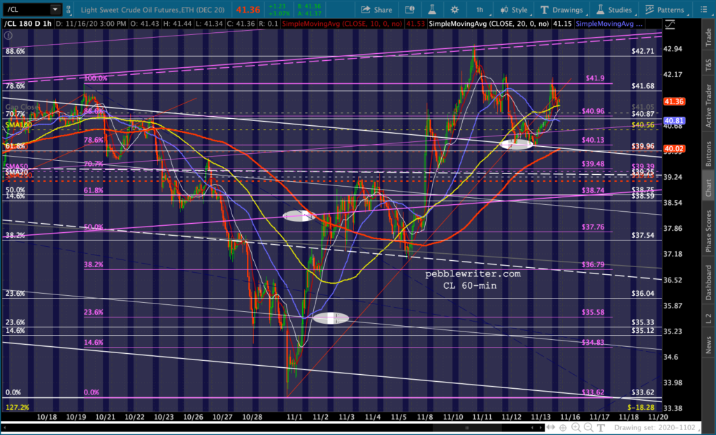 …one might think oil prices would be sliding. Yet, we’re seeing another sharp pre-market rally in both CL (which completed a Bat Pattern last Wednesday) and RB.