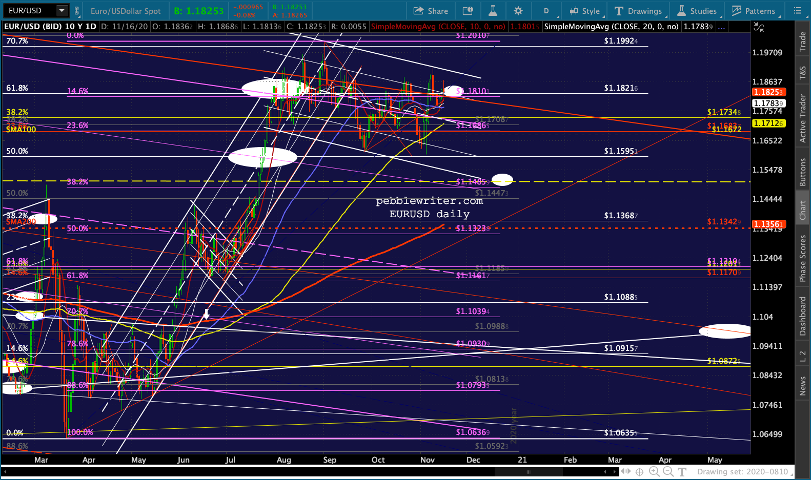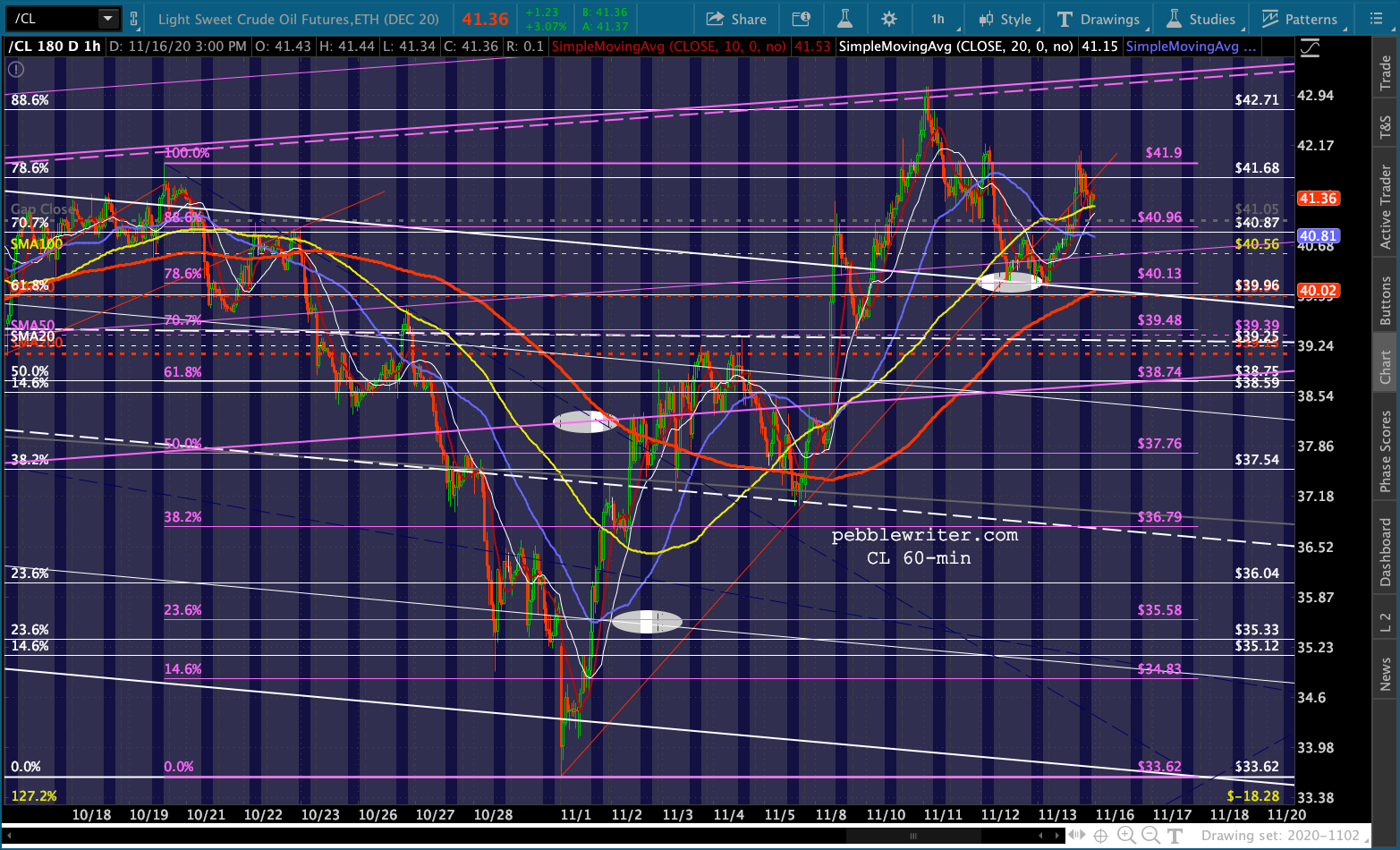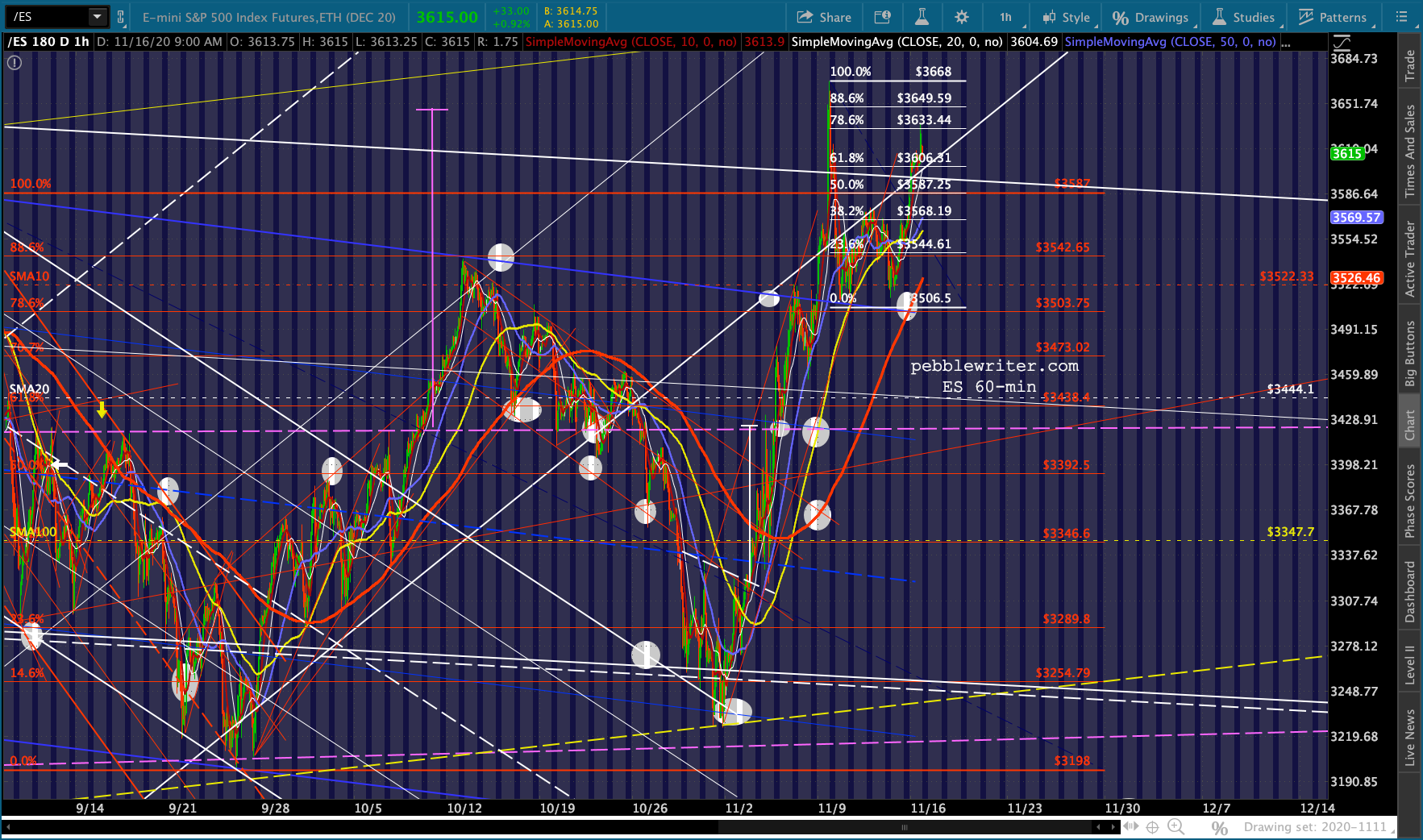 This has enabled ES to continue backtesting the bottom of the broken white channel and, despite breaking down again, enabling a .786 retracement of the all-time high registered on Nov 9.
