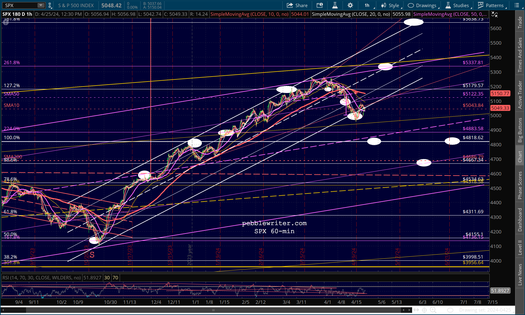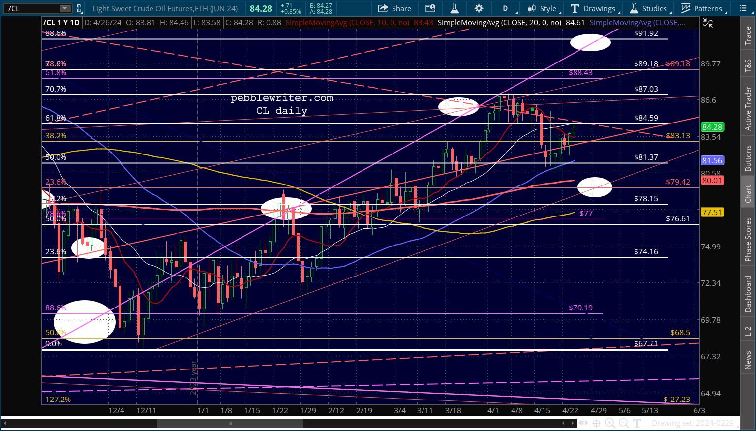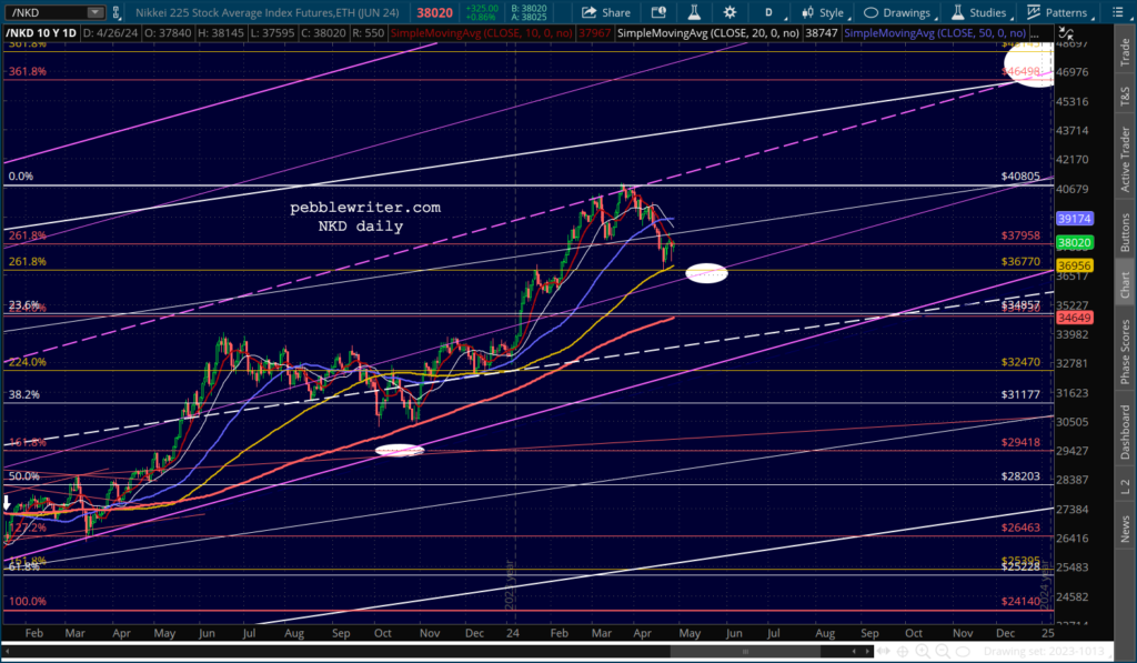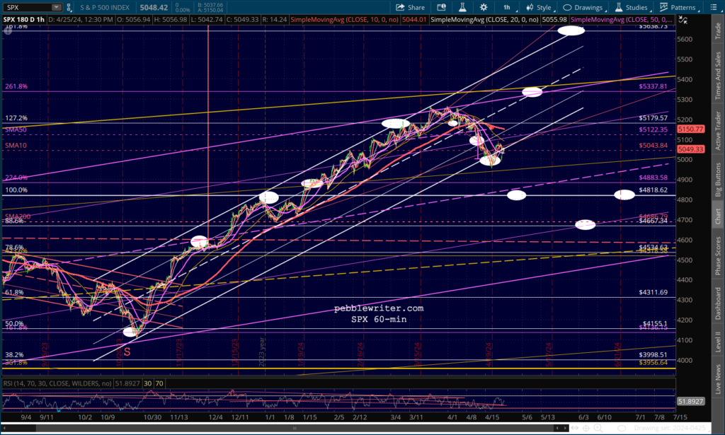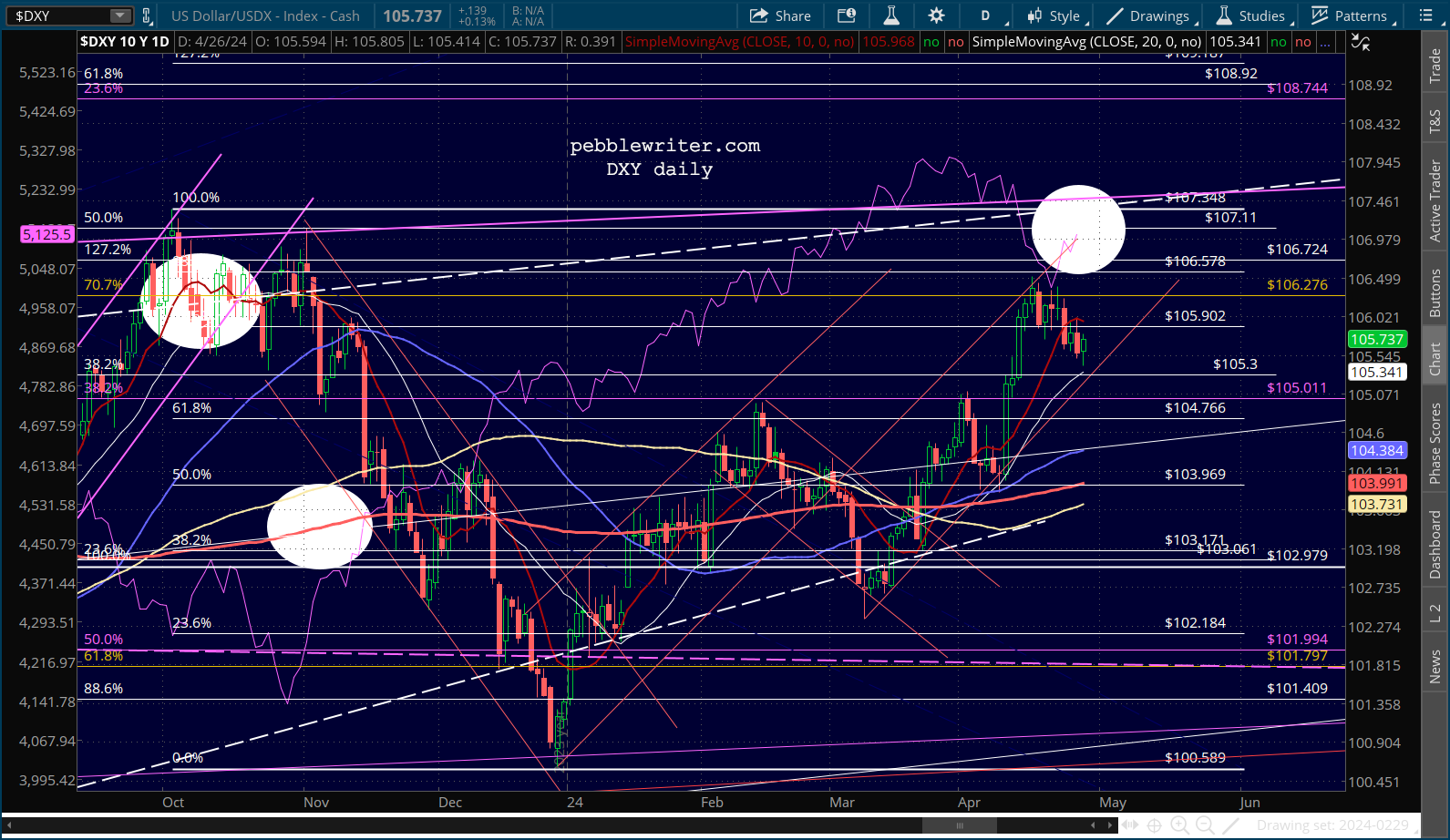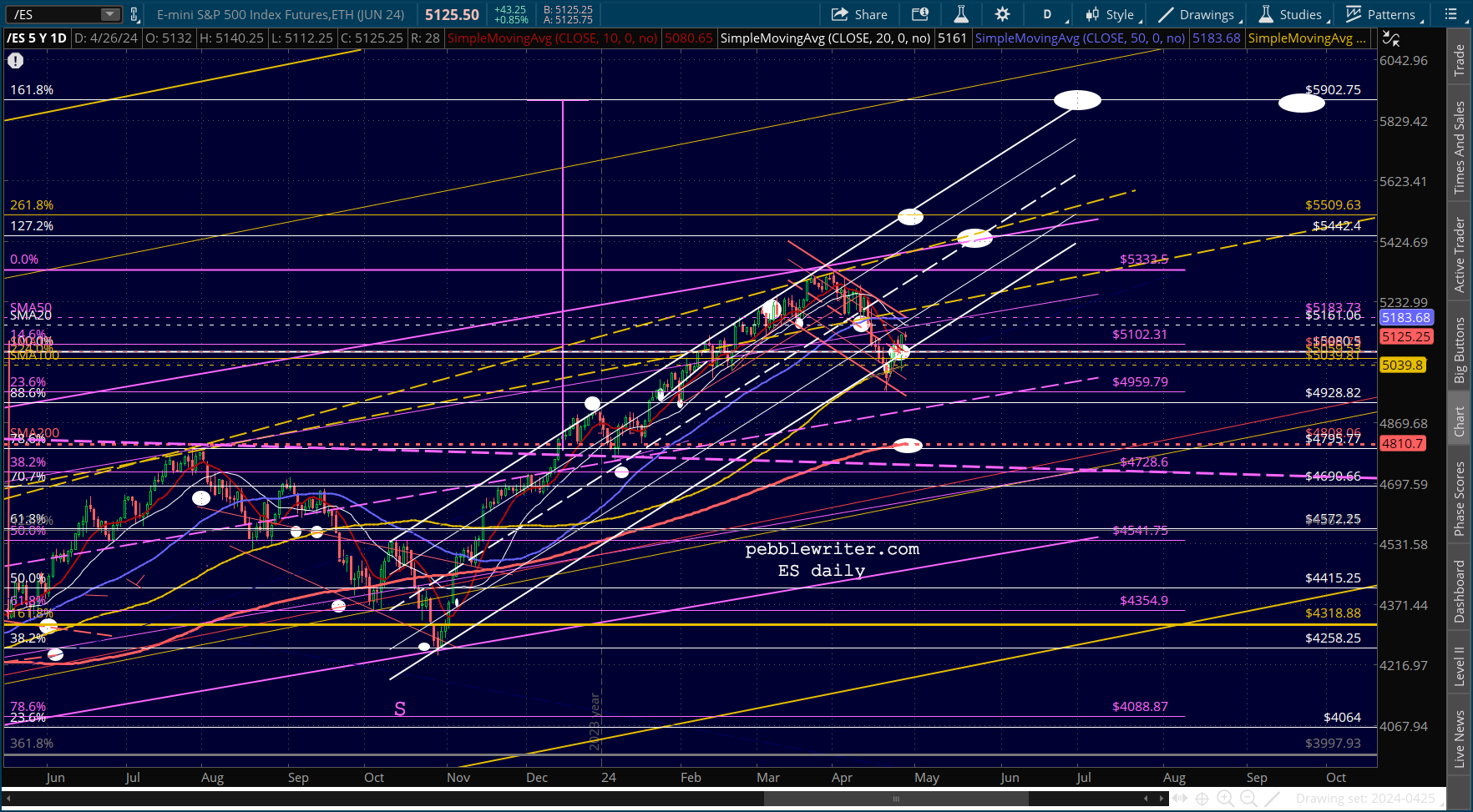 As long as SPX and ES can remain in their rising channels, the 10Y doesn’t top 4.74% and the 2Y doesn’t top 5%, and oil and gas prices don’t rally, the improbable equity rally will probably continue. At some point, it will require that VIX drop through its SMA50 and SMA200 (both at 14.85) and even the purple TL at 14.