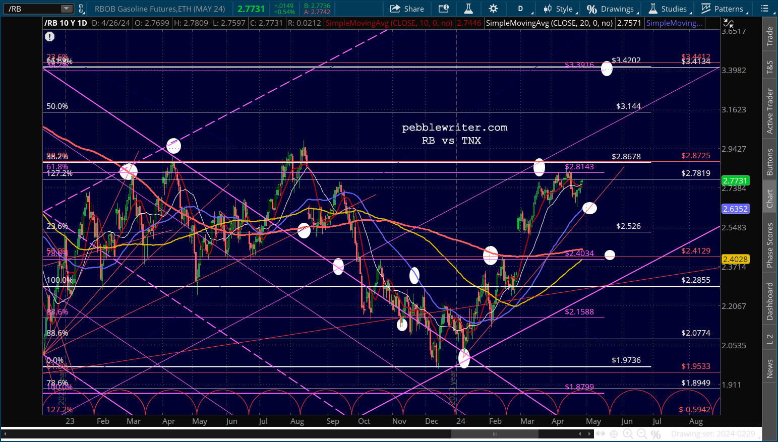 Still a concern is oil/gas prices. CL and RB have both pushed back above their SMA10s and CL is threatening a breakout.