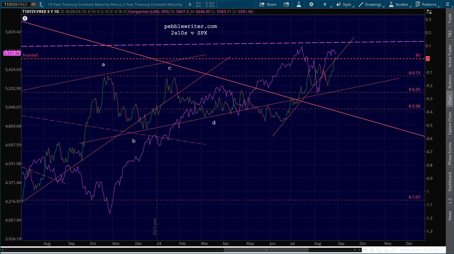 The 2s10s has backed off its recent highs and is back to a -5 bps inversion ahead of the holiday weekend.