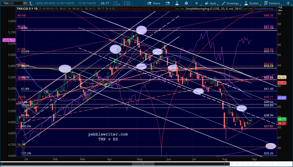 The print does nothing to disturb expectations of a 25 bps rate cut in September. Futures are up modestly, leaving ES at our targeted price even though a 50-DMA backtest never quite materialized.