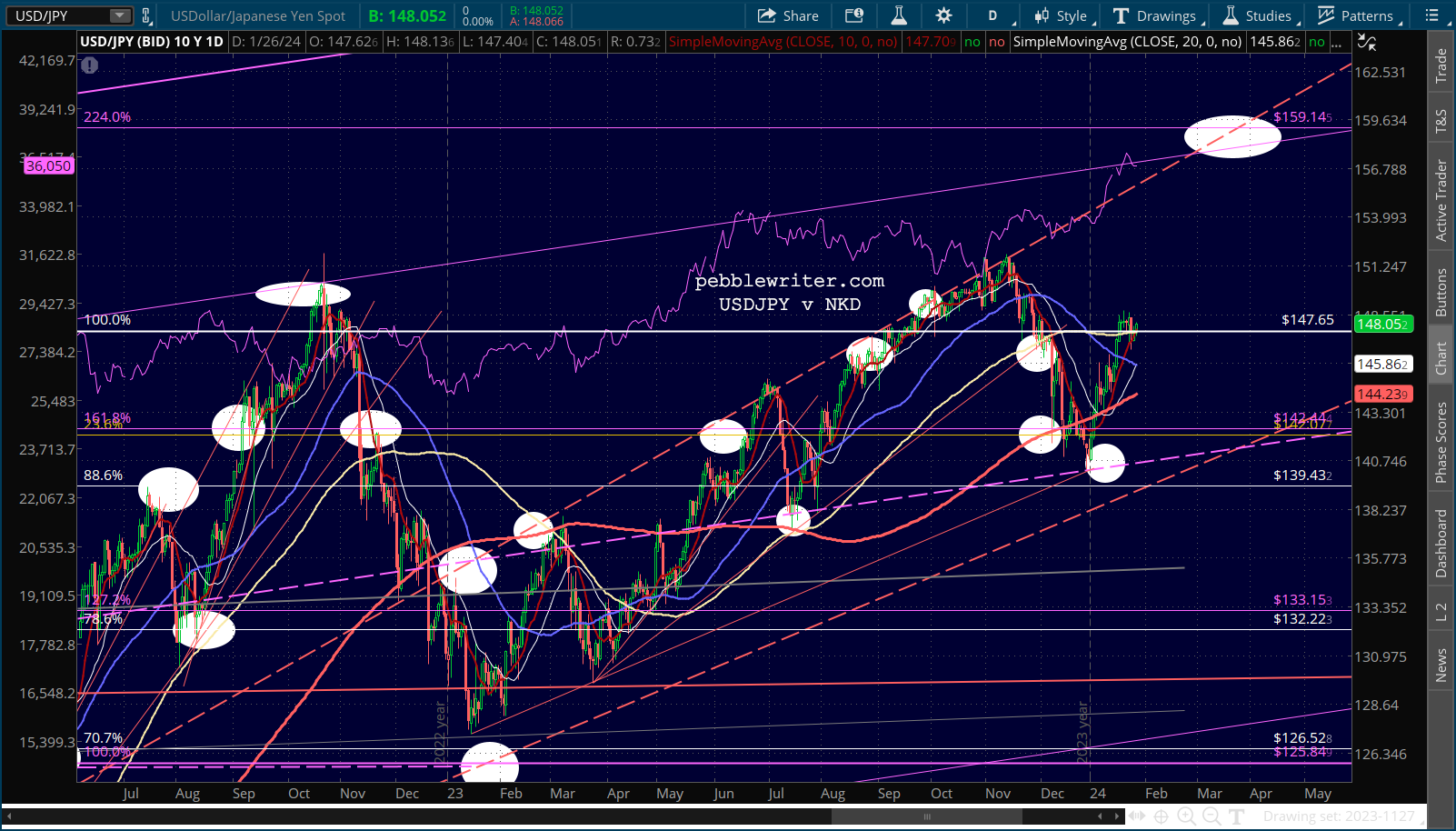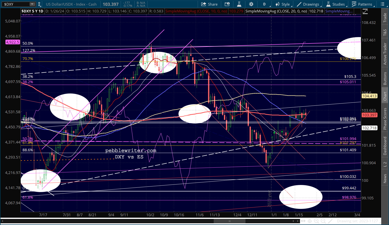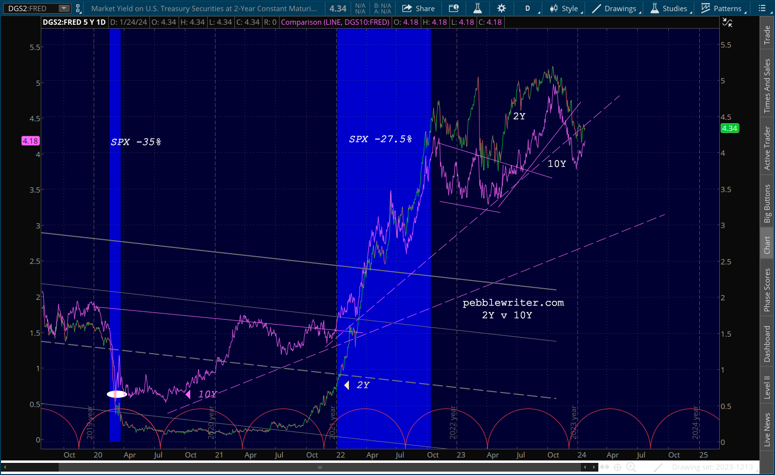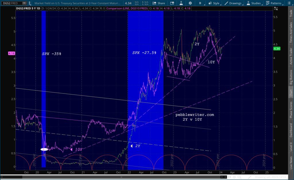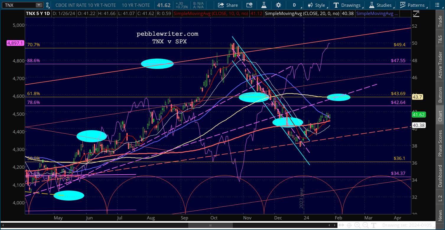 The 10Y continues to go sideways just above its SMA200, with a backtest at 4.37 still a good possibility.