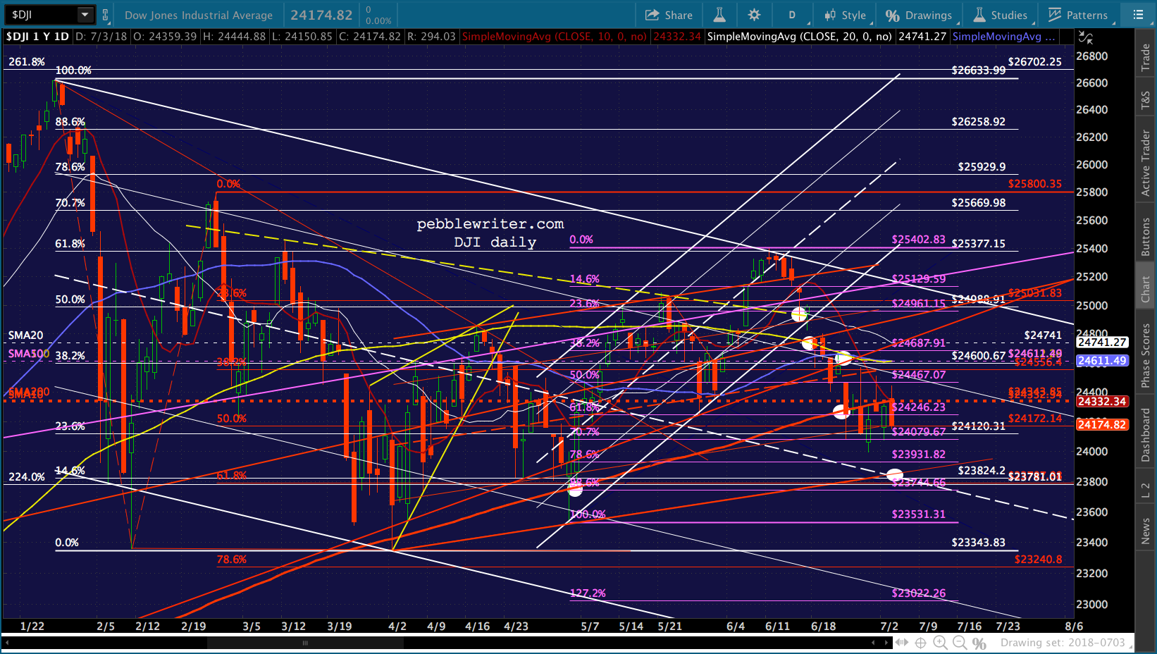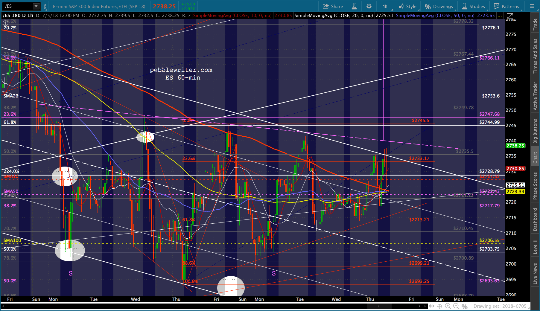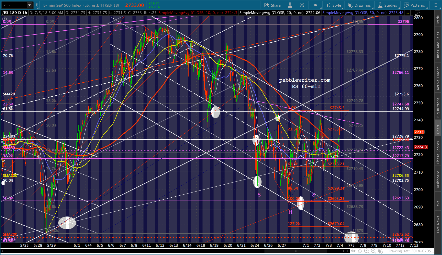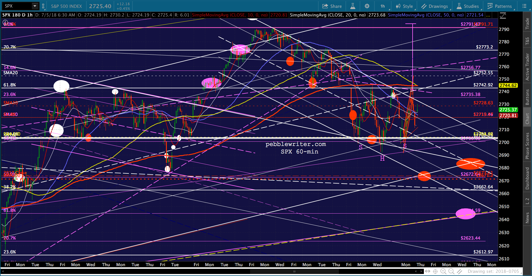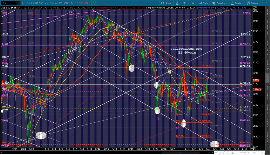 SPX will test its SMA10 this morning and likely fall back. I continue to favor a drop to the SMA200. But, cautious types should obviously keep an eye on the 2.24. The midline of the falling white channel passes through it today. So, it carries additional weight.