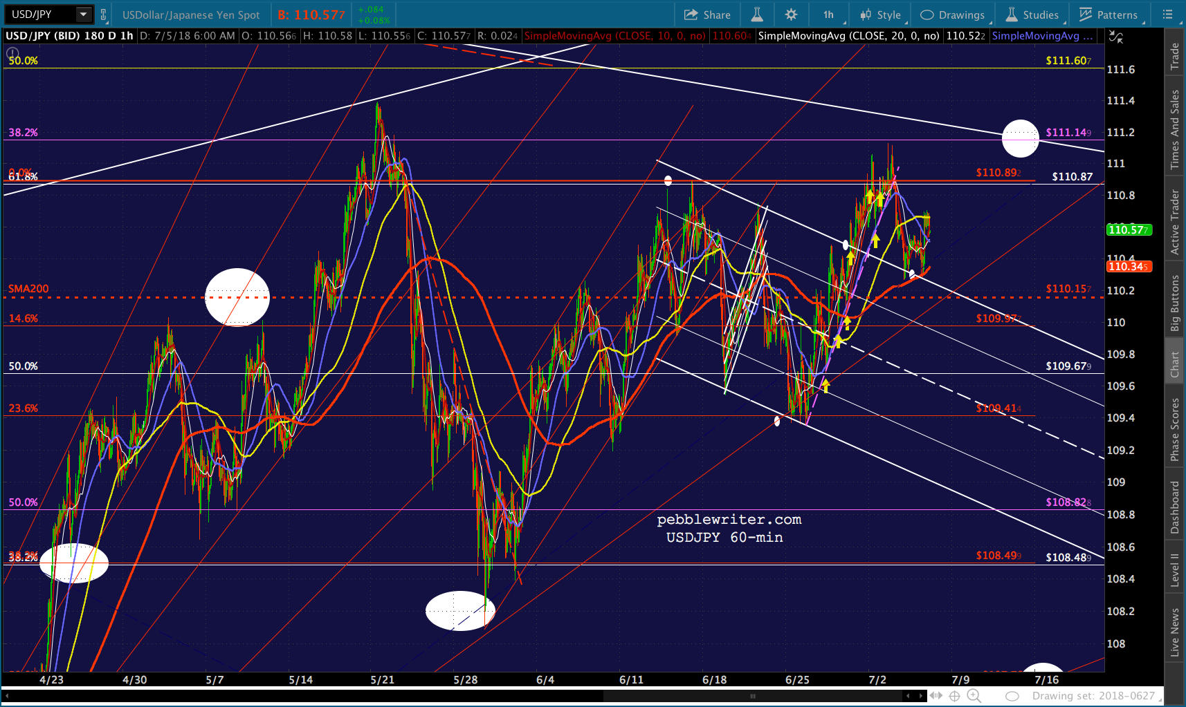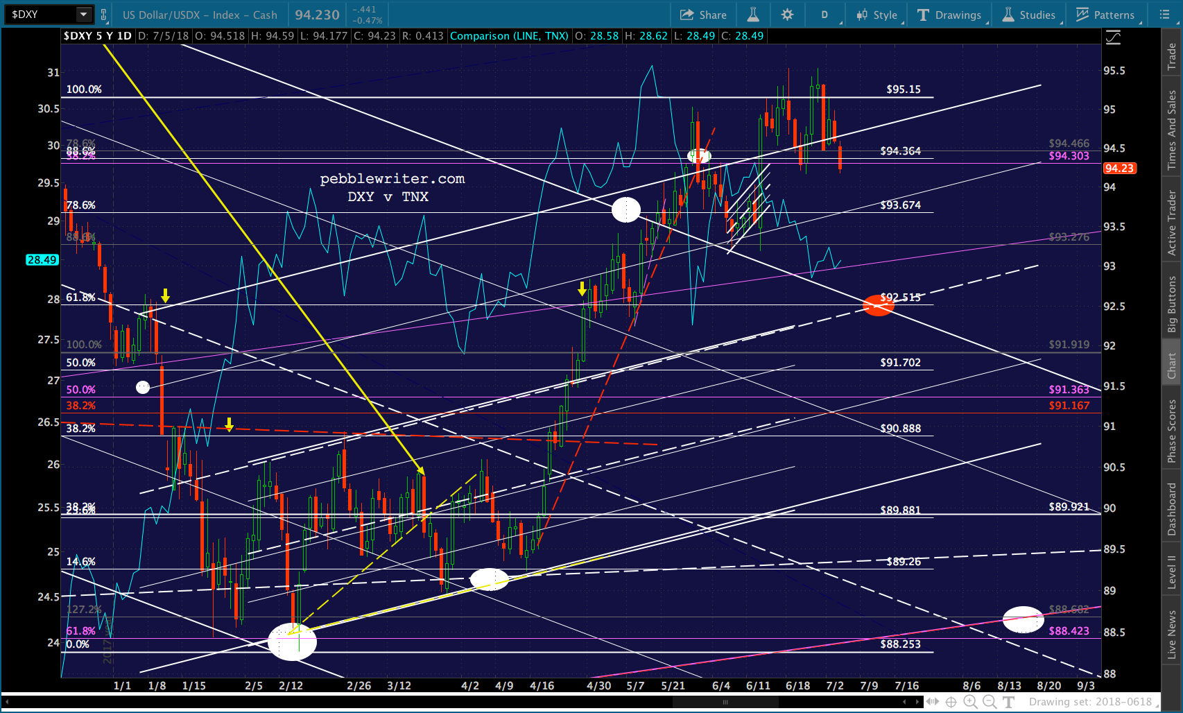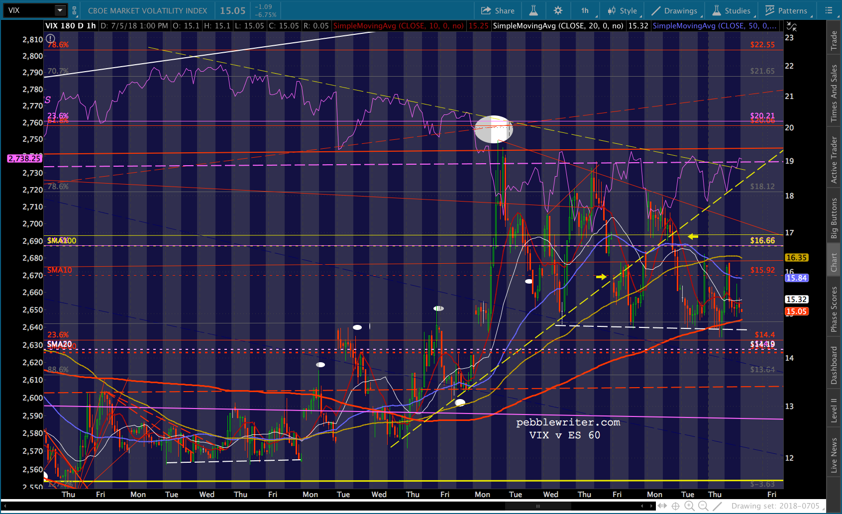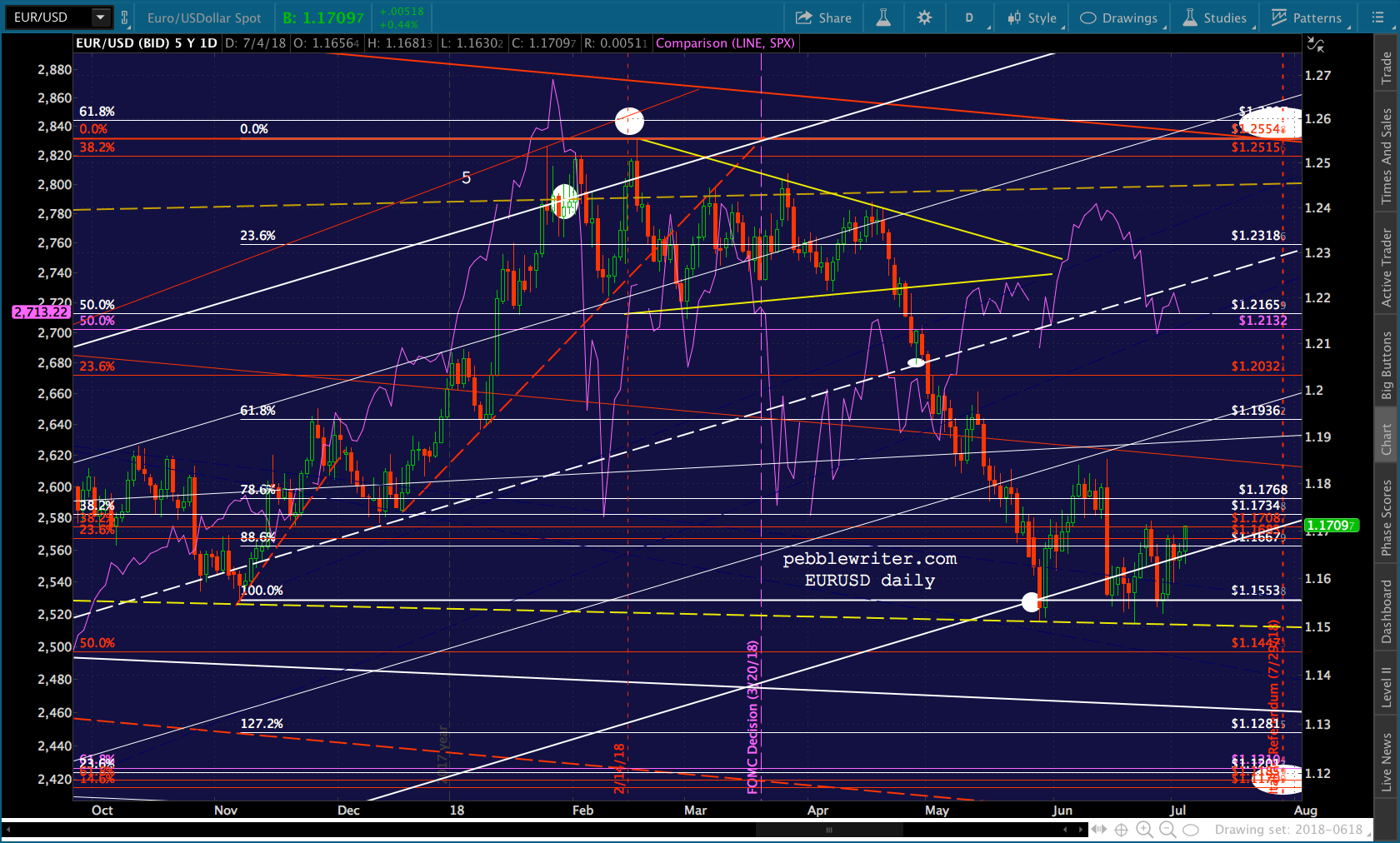 SPX will test its SMA10 this morning and likely fall back. I continue to favor a drop to the SMA200. But, cautious types should obviously keep an eye on the 2.24. The midline of the falling white channel passes through it today. So, it carries additional weight.