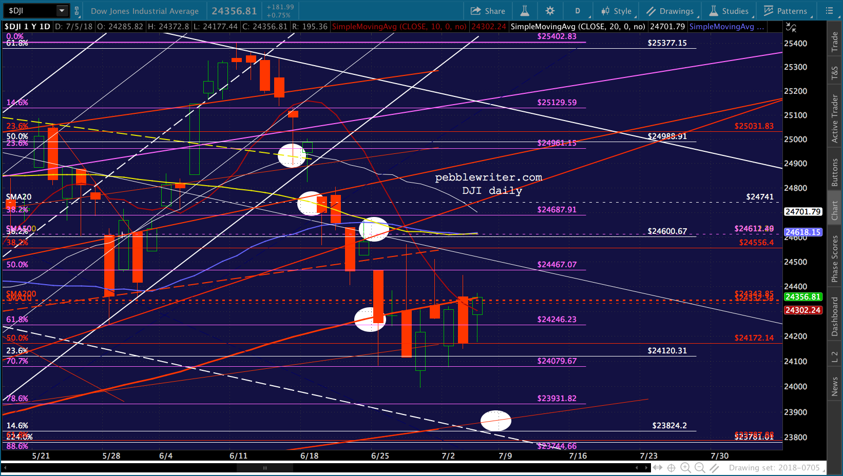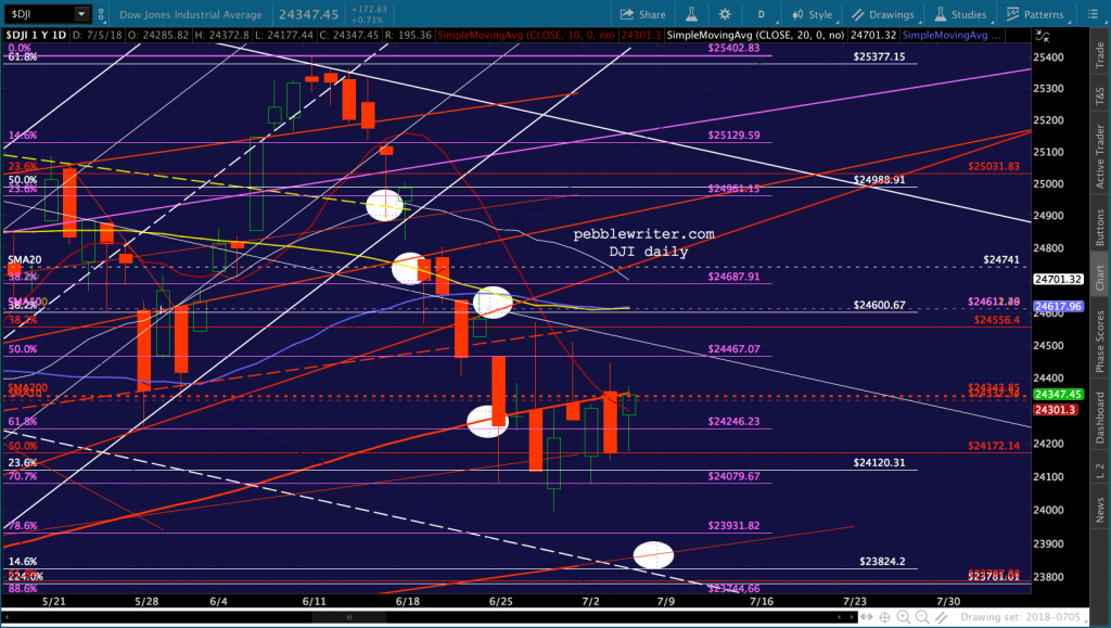 I take it back…DJIA spiked up a few points literally in the last 10 seconds of trading. So, it closed at 24358 versus the SMA200 of 24353.