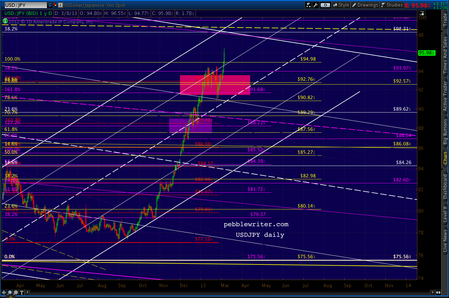 sorry, didn’t see that … 98.31, eh? that’s a lot of empty space on this near vertical ascent, but is consistent with the $ firming and the yen weakening. if i were to date this new target, looks like march 20?