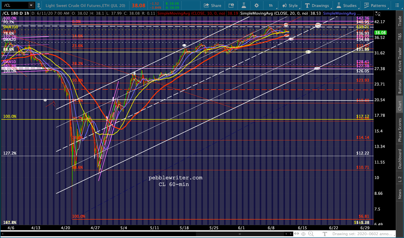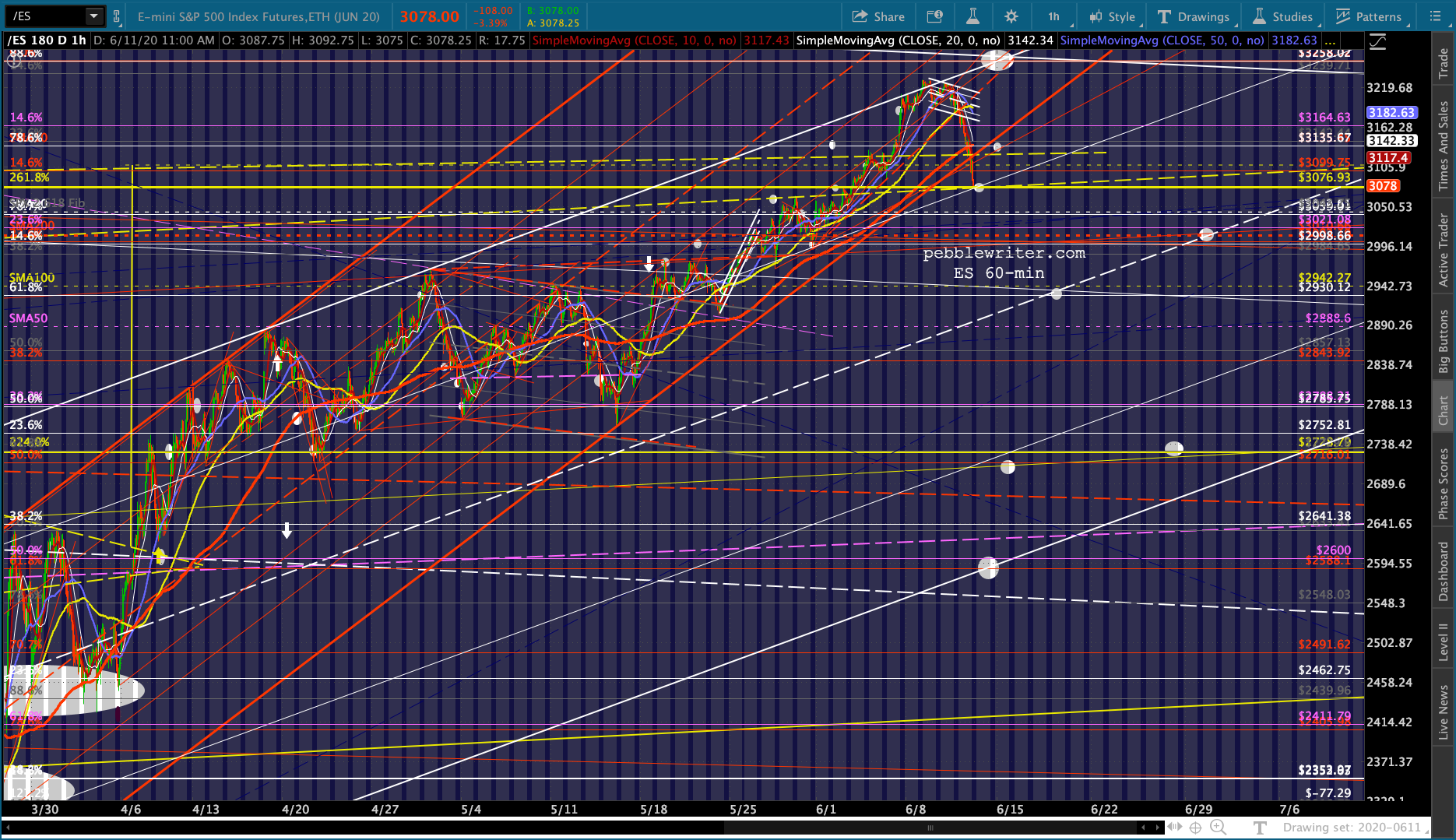 BTW, this doesn’t mean a backtest of the yellow trend line, SMA200 and .886 is out of the question. We still have the Q2 and OPEX hurdles to get past. A backtest of the falling white channel could come toward the end of the month.