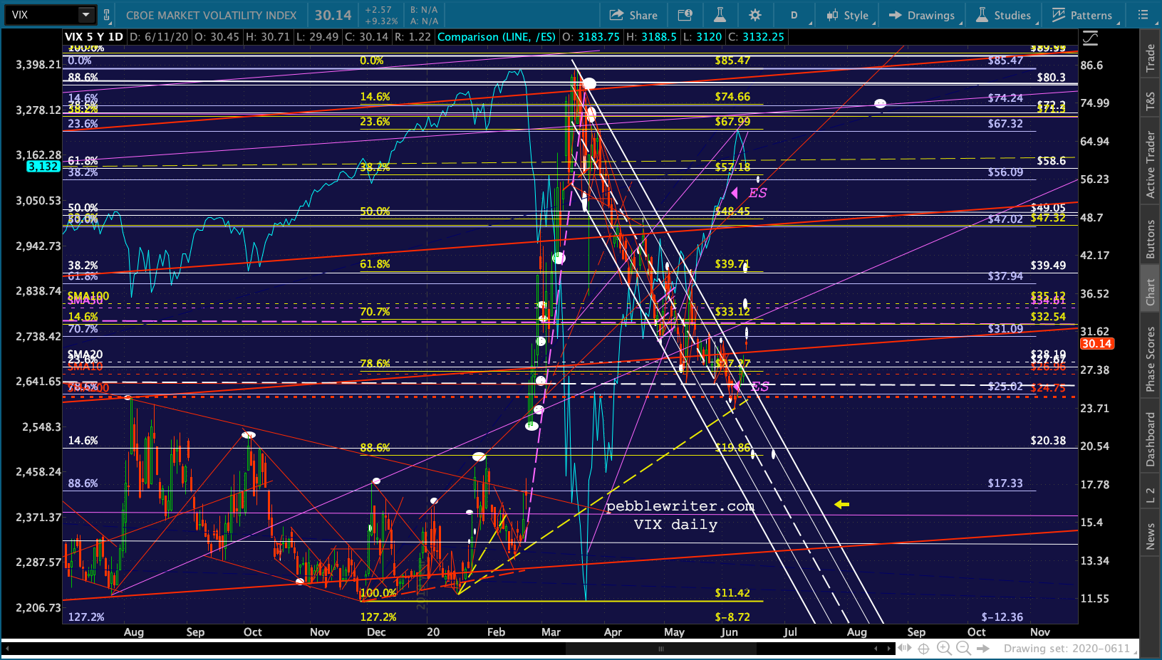 A great example is our VIX chart, which has exhibited an orderly collapse since it reached our Fibonacci .886 target at 80.3 on March 16.