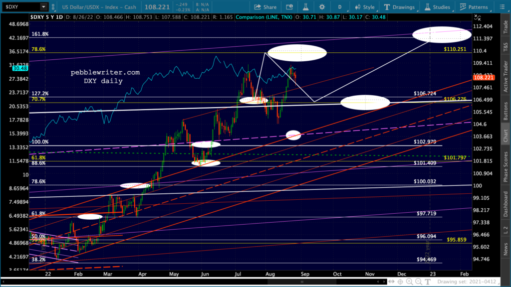 Whether it goes any further will continue to hang on the level of manipulation going on in VIX and currencies. VIX backtested the bottom of its rising white channel…