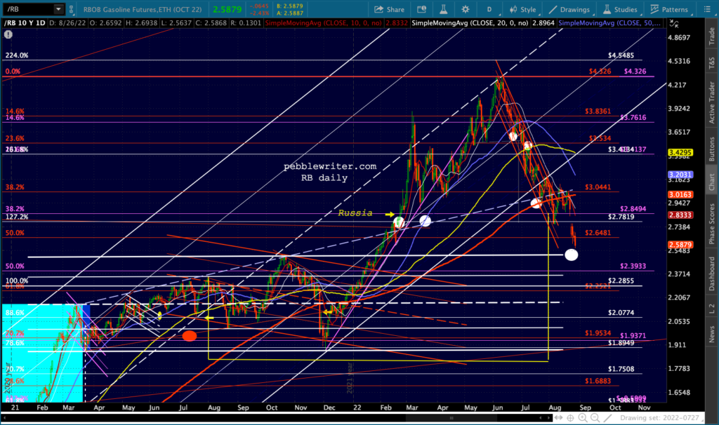 The slowdown Powell no longer seems to discount will mean lower oil and gas consumption and therefore prices. At least that’s what the charts indicate. RB is nearing our 2.52 target – an important level of support.