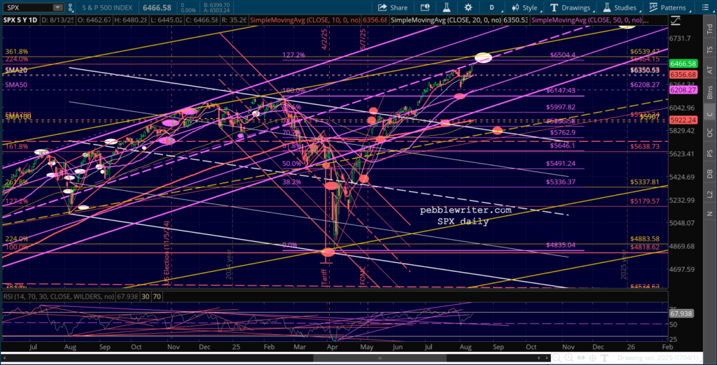 The uptrend remains in place, though there’s a high likelihood that we’ll get a retrenchment that causes a bearish 10/20 cross in SPX – one that also recognizes the negative divergence on RSI.