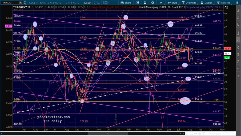 Note that SPX’s SMA200 is emerging from the large falling white channel, offering a logical downside target if the Fed turns more hawkish in the next several weeks.