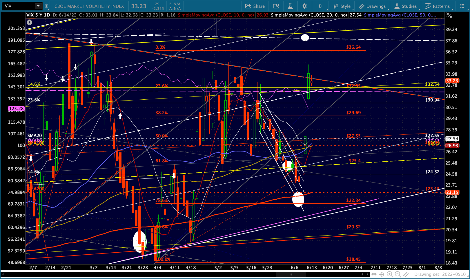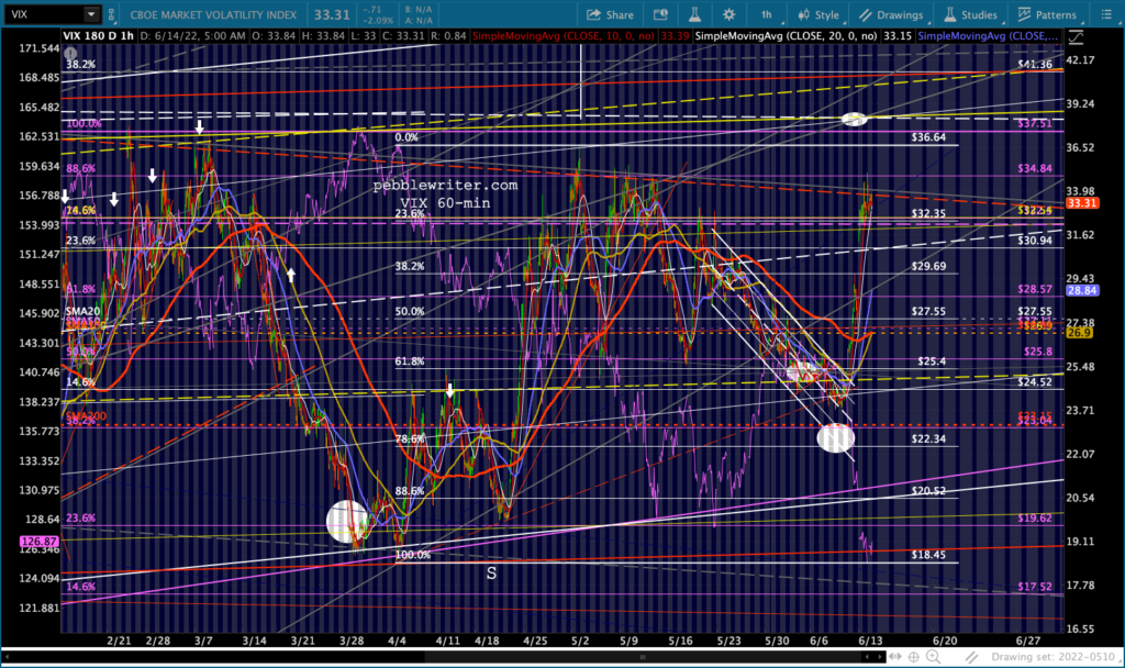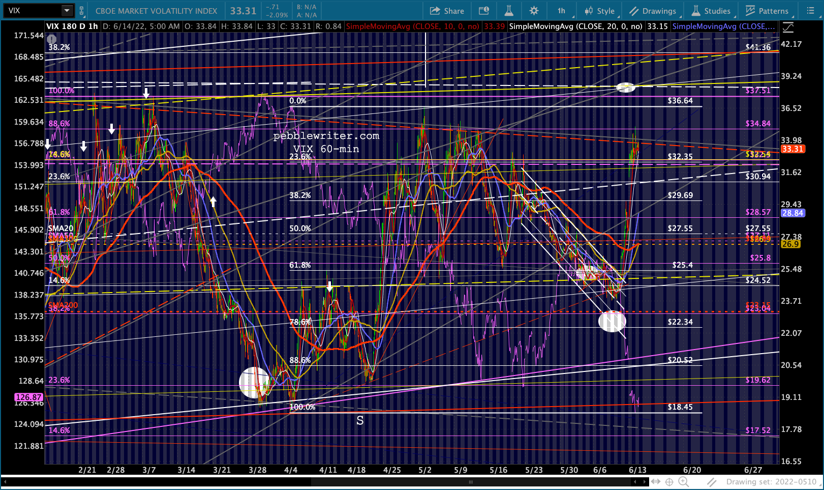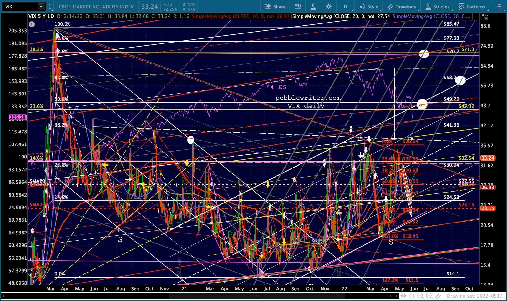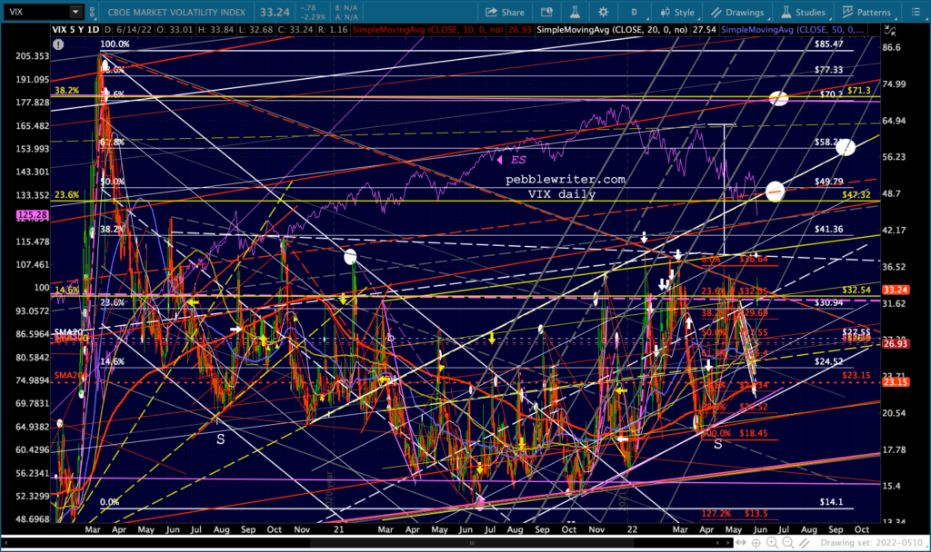 VIX has retreated from the fan line we’ve had our eyes on, but not so much that it seems certain to hold. In fact, the SMA10 looks likely to top the SMA20 today – the same day that ES/SPX SMA10s drop back below their SMA20s.