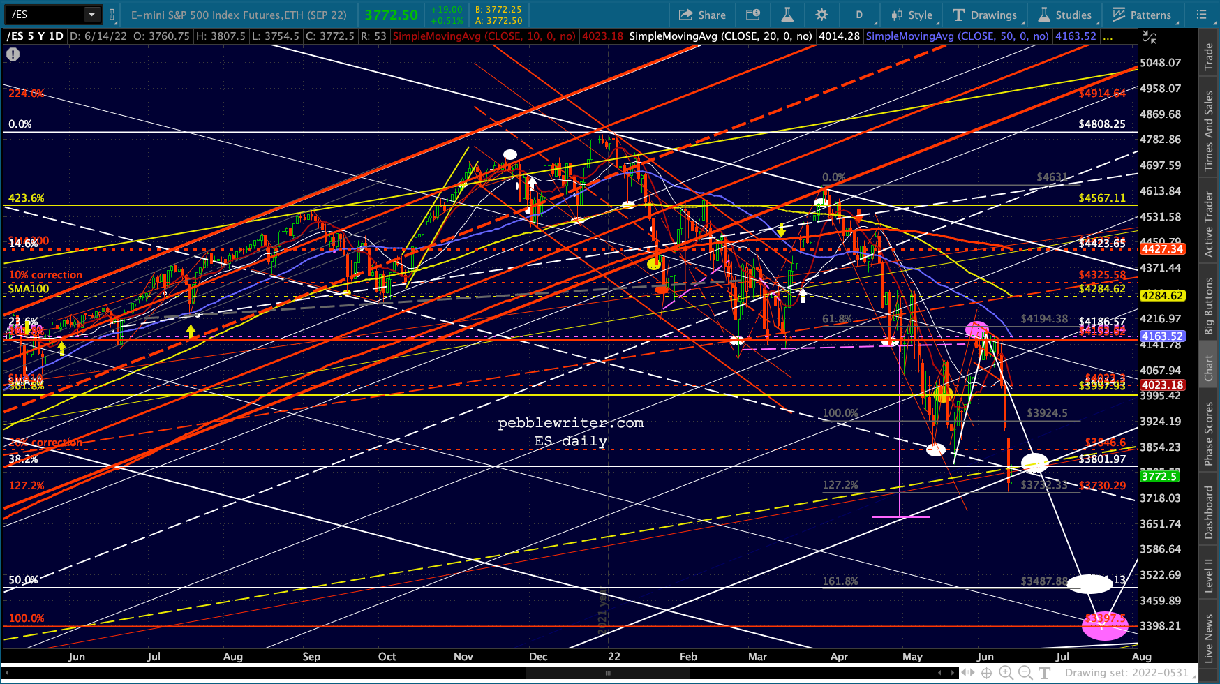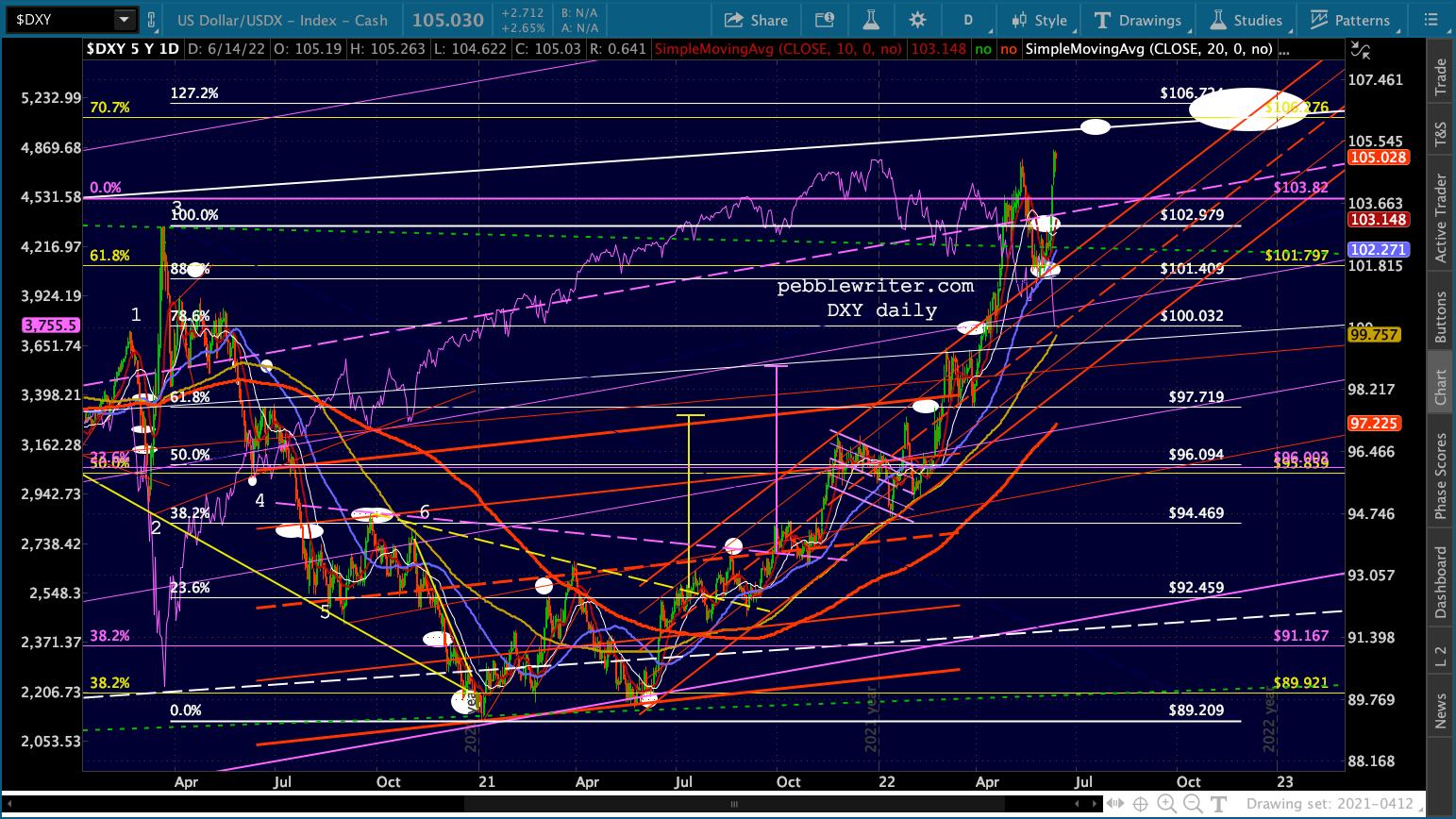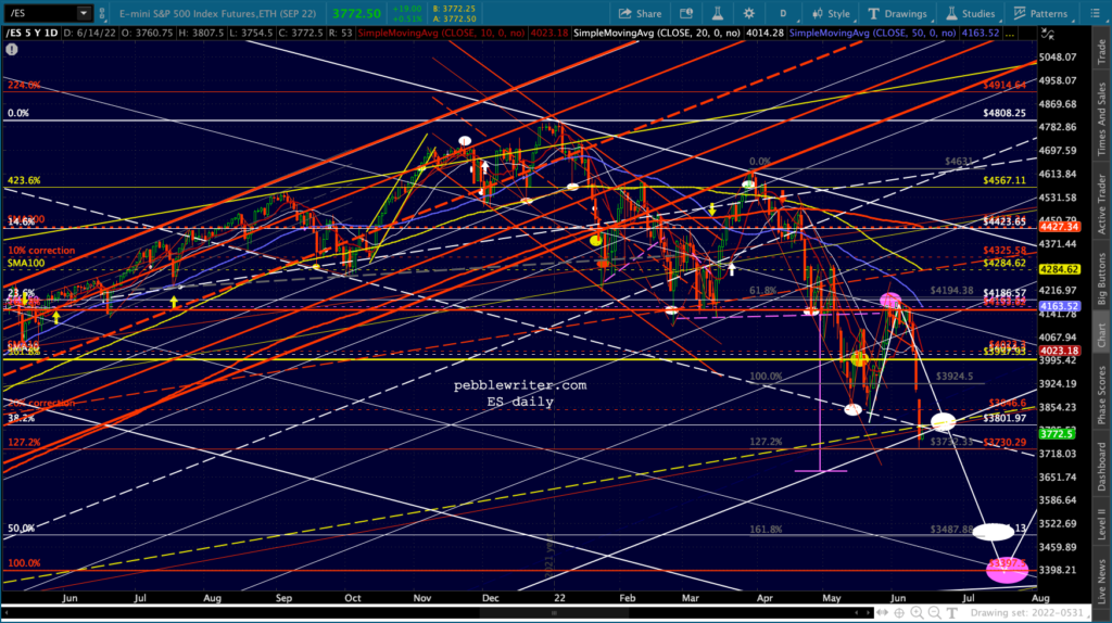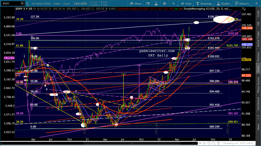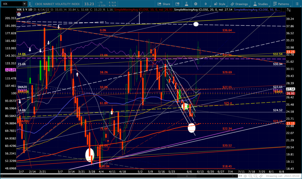VIX has retreated from the fan line we’ve had our eyes on, but not so much that it seems certain to hold. In fact, the SMA10 looks likely to top the SMA20 today – the same day that ES/SPX SMA10s drop back below their SMA20s.