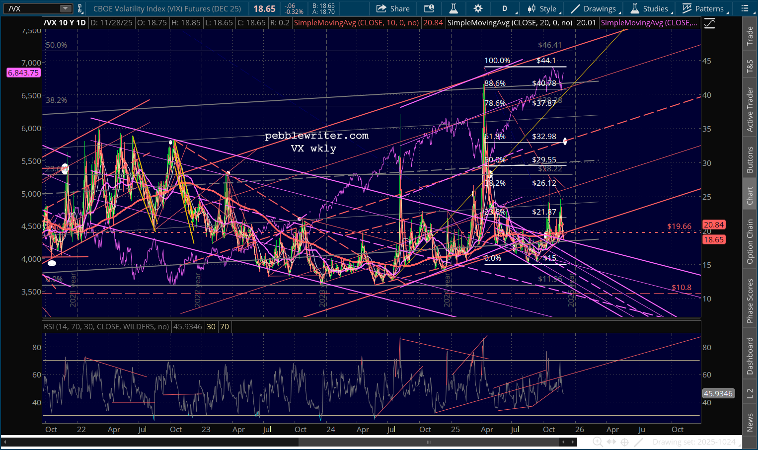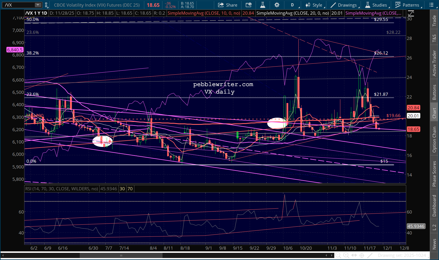 We have to go to the VX futures to see the true state of affairs – a backtest of the large falling purple channel from Jan 2022. This isn’t to say that the channel won’t be violated again, like it was starting on May 12.