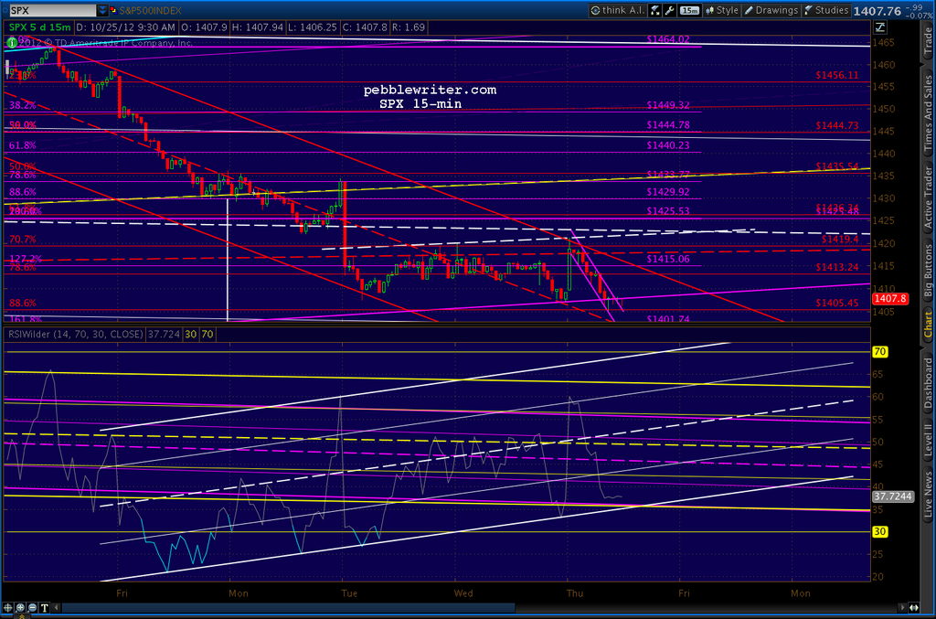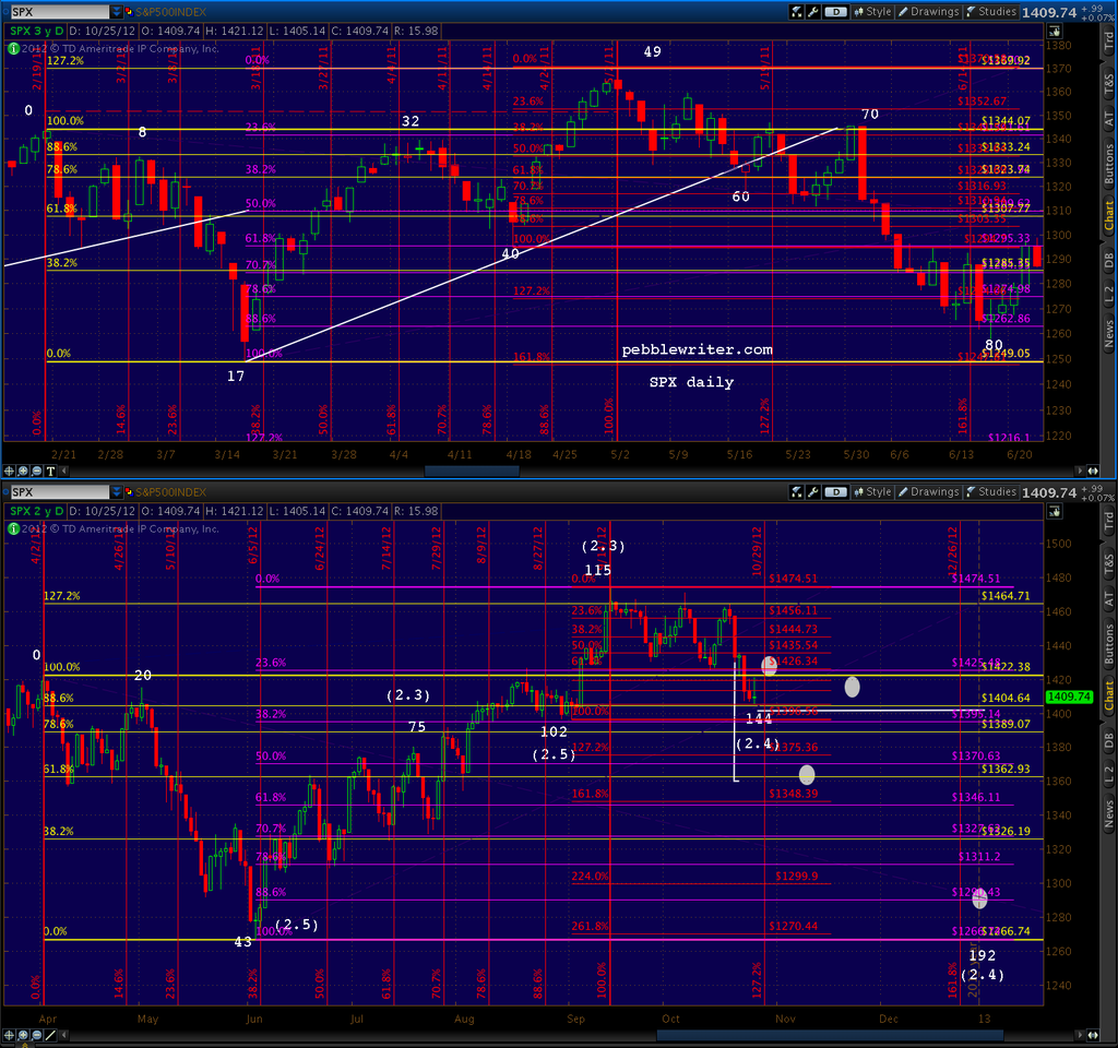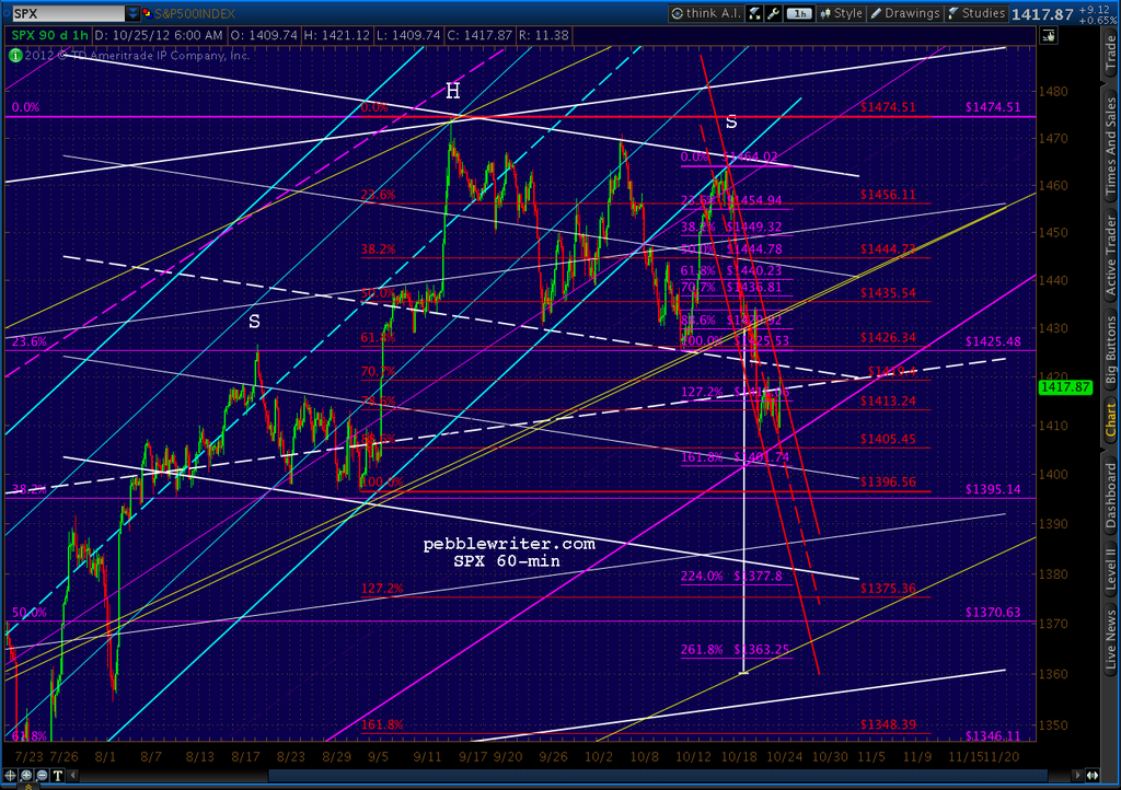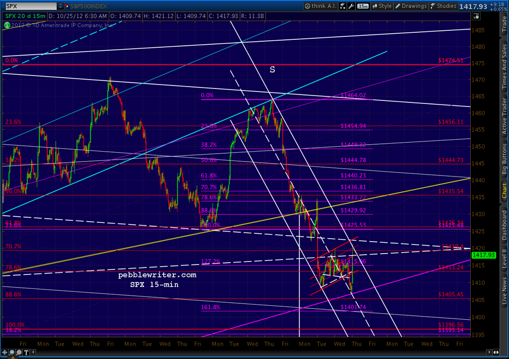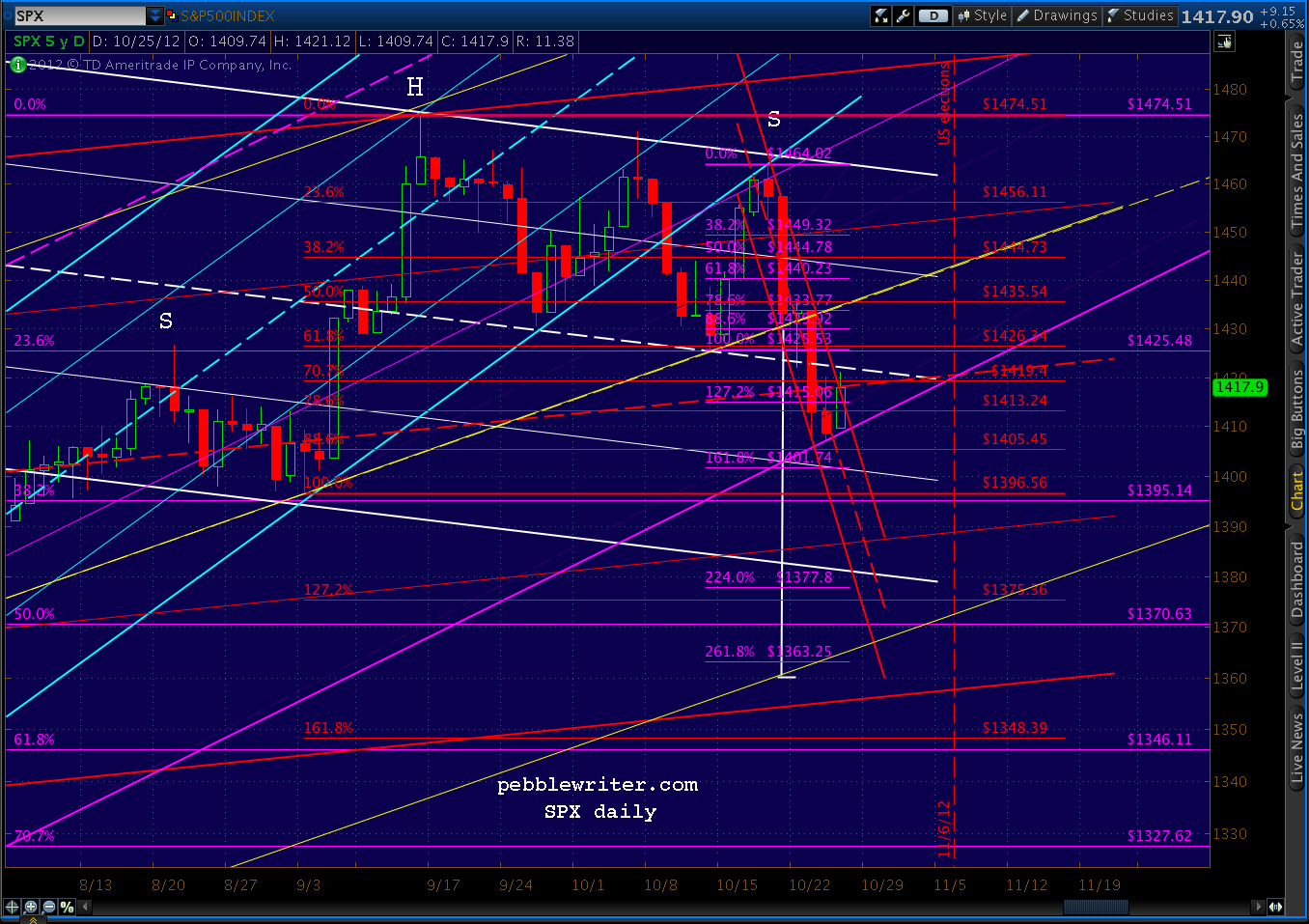 I’m expecting a run up to 1420-1440, then down to 1360 after the election. Please refer to the analog chart posted late in the day.