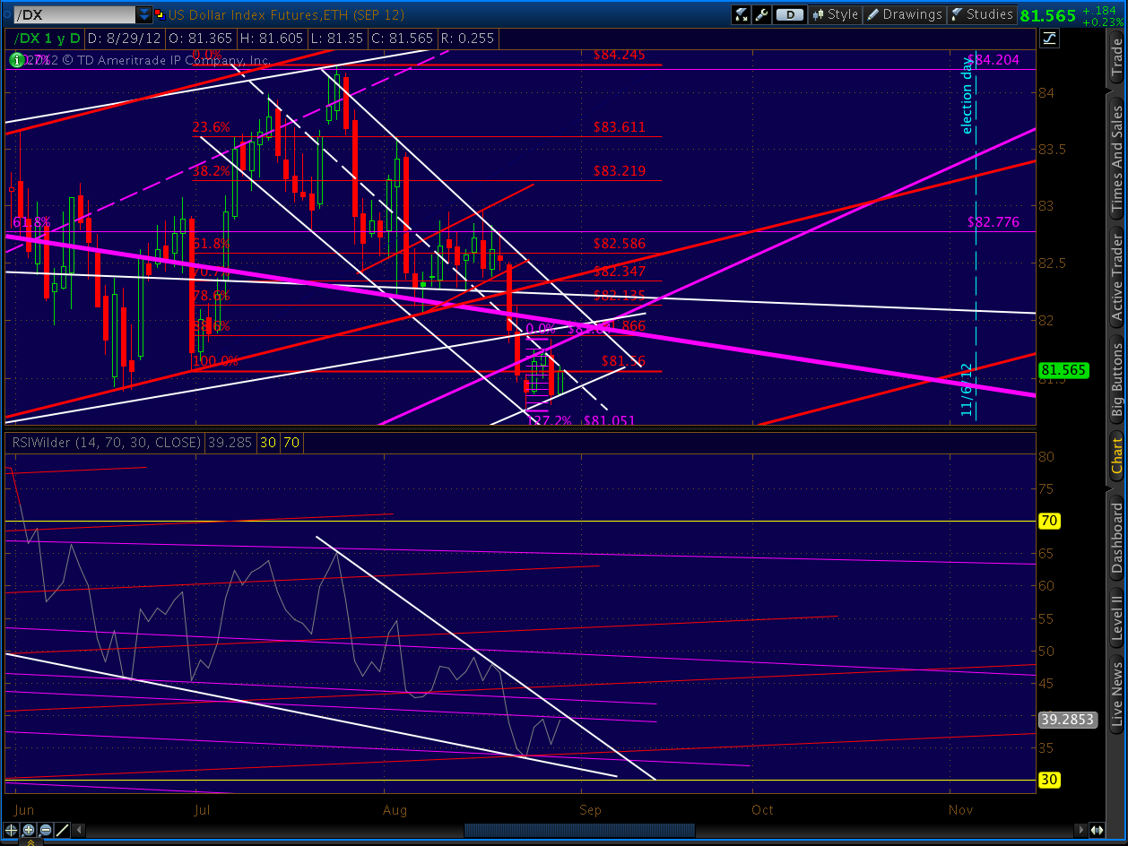 A trip to the lower bound looks like it could drop DX on down to our 80.83-80.88 target, based on similar RSI moves in the past week or so.