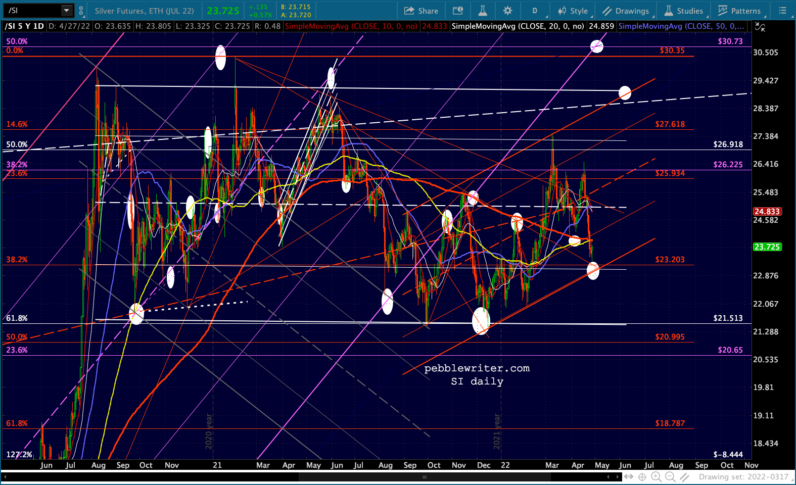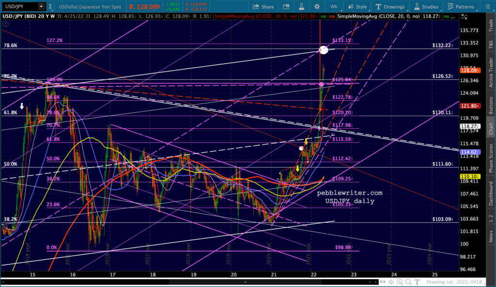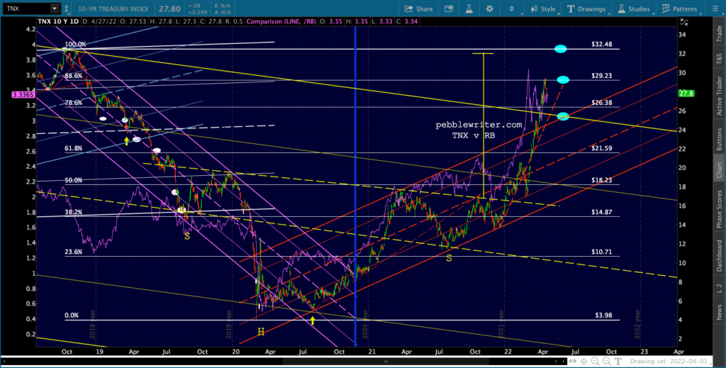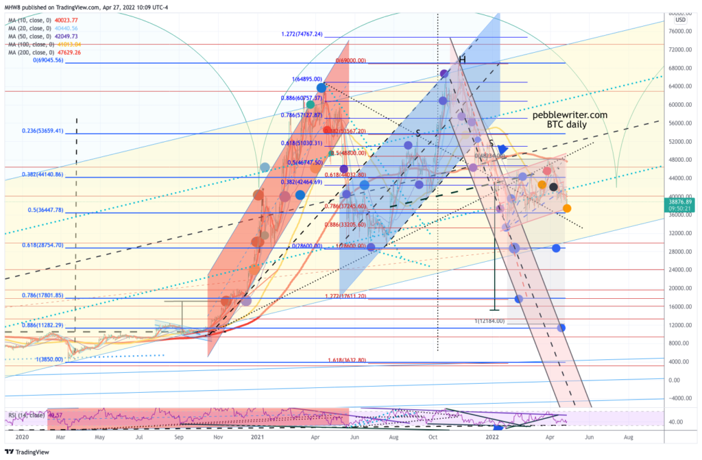…but will also resume its decline if/when everything else does. Remember, it still owes us a tag of the blue .618 at 28,754 and the Flag Pattern constructed over the past 3 months targets 12,184 – right next to the .886 at 11,282.