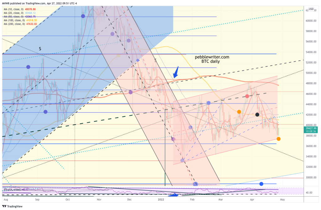 Yesterday’s lows were probably enough to satisfy BTC’s yellow channel bottom tag. It’s bouncing because everything else is…
