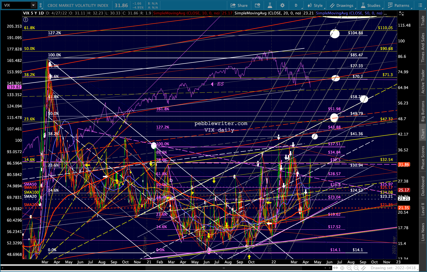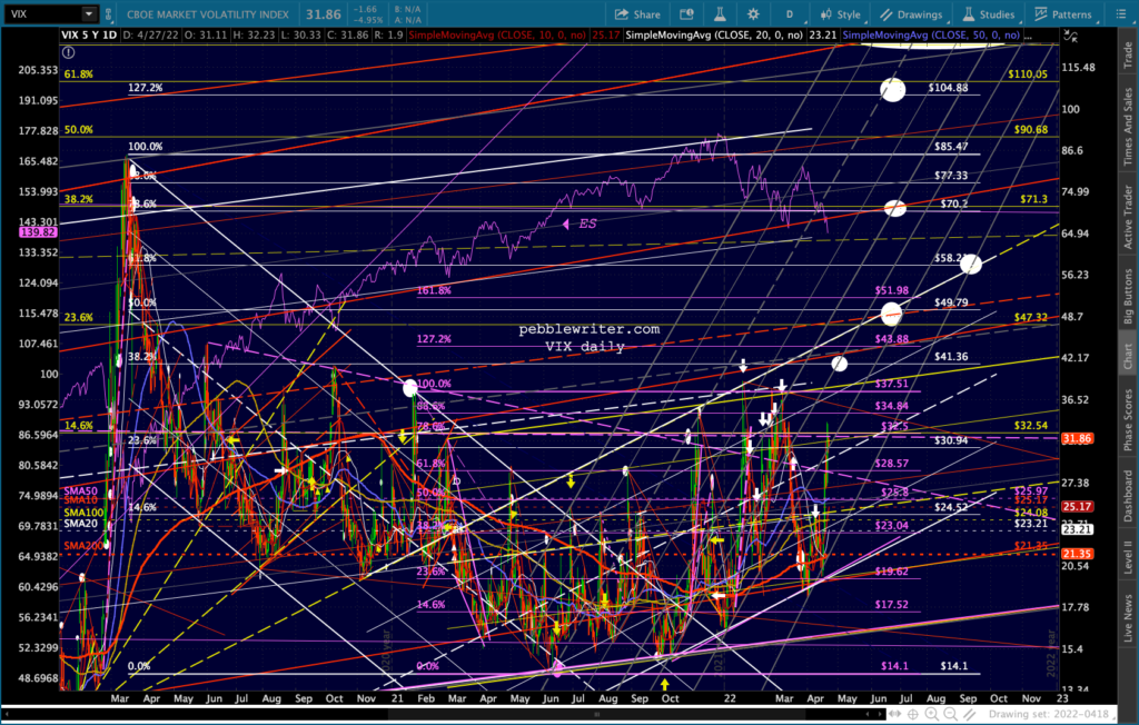 VIX is off yesterday’s highs without having really hit anything yet – telling me that the men behind the curtain are trying to get ES back on the falling white channel track.