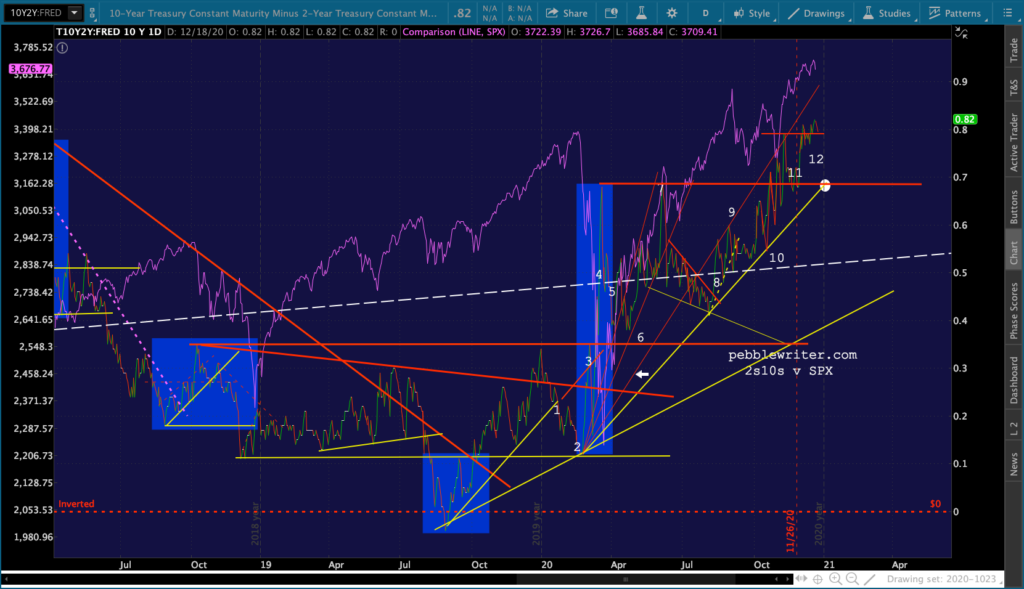Note that the SMA200 target was hit in one fell swoop rather than waiting for the MA to decline to the yellow TL as we expected.