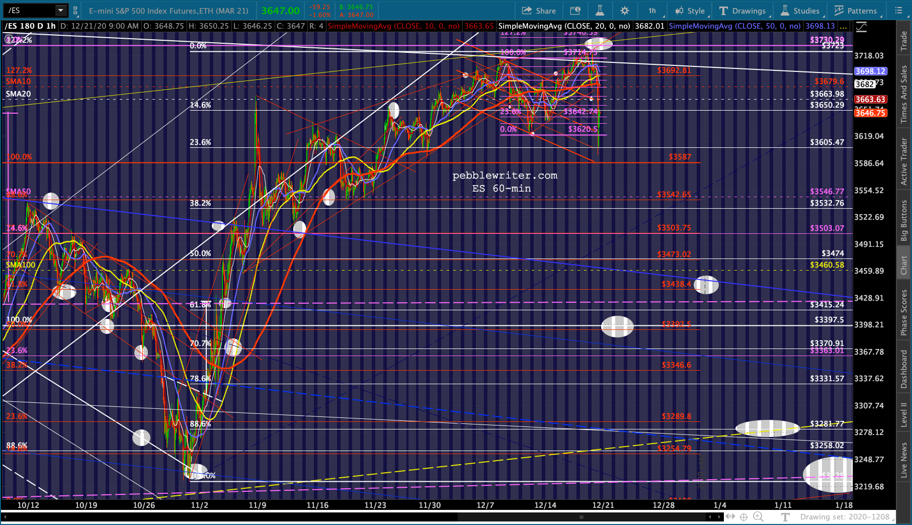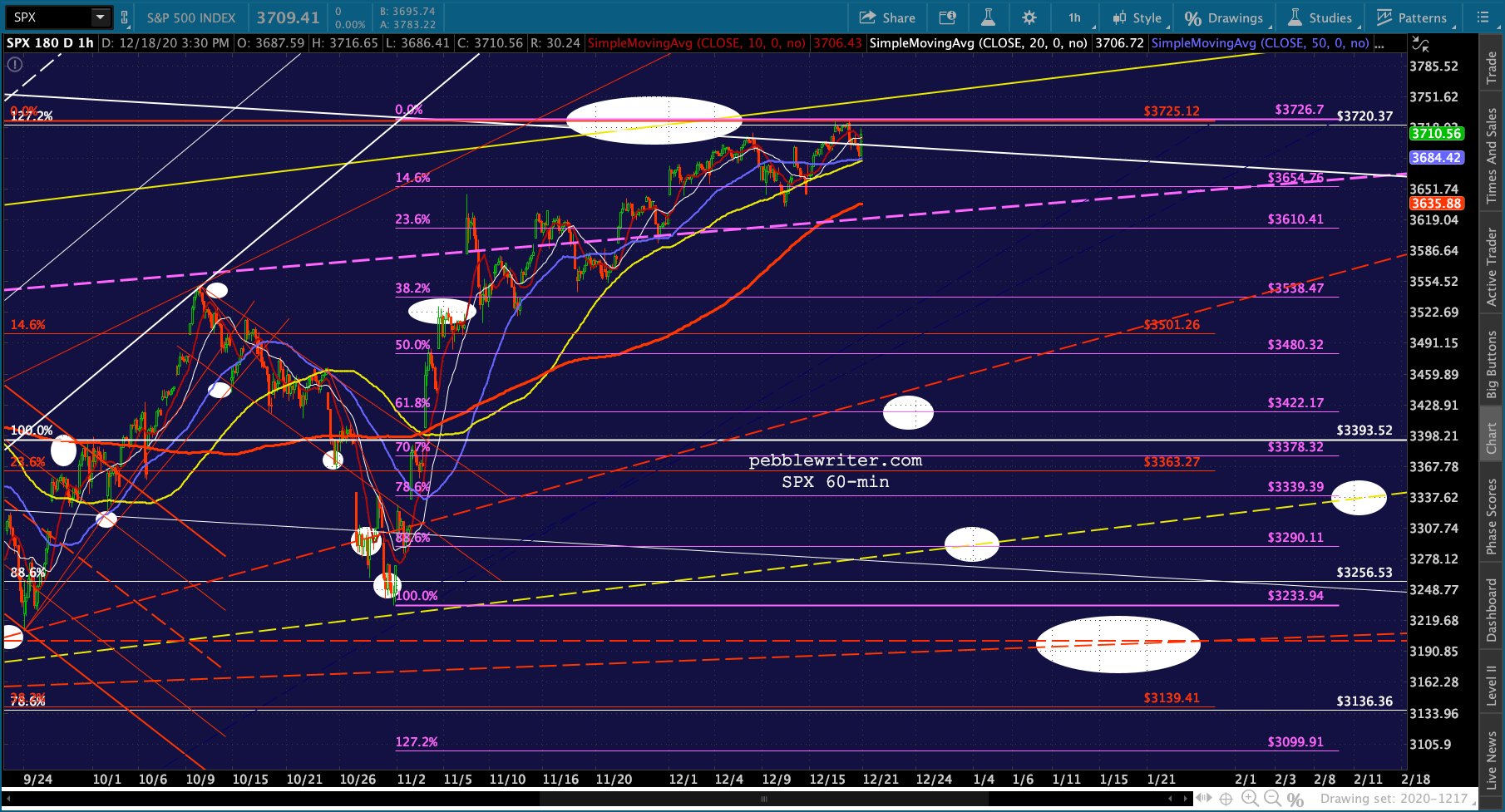 ES, off 128 points a few hours ago after coming within 6 points of our 3730 upside target, has rebounded sharply from its lows as algos cheer VIX’s pullback after testing its 200-DMA.