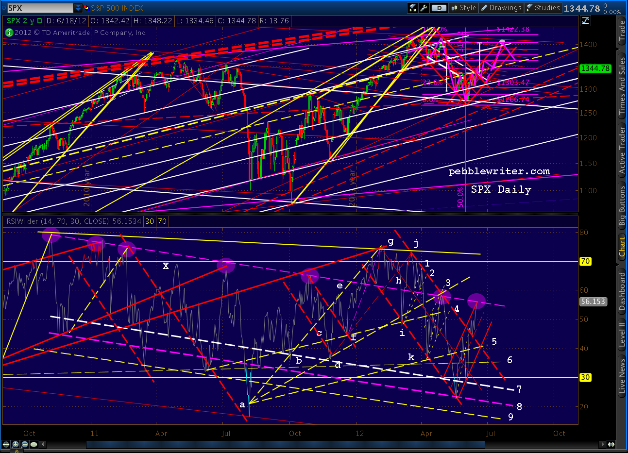 Hello PW, as you shorted at 1363, what is your target? In your post yesterday, when SPX reached 1348, you expected a pullback to “1326-1329 over the next several days before starting up.” Meanwhile, if BB disappoints the market and there is a pullback, what is reasonable level to watch for you to switch side? Thanks! The past 4 trading days were very unnatural and favorable to the bulls. June 14: Rumor about global central banks to save the world if Greece election disappoints. June 15: Opex. June 18: Greece stays in Euro (for now). The world is saved. June 19: Rumor about German agreed to buy bonds. And QE expection.