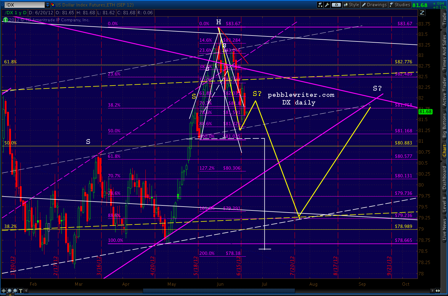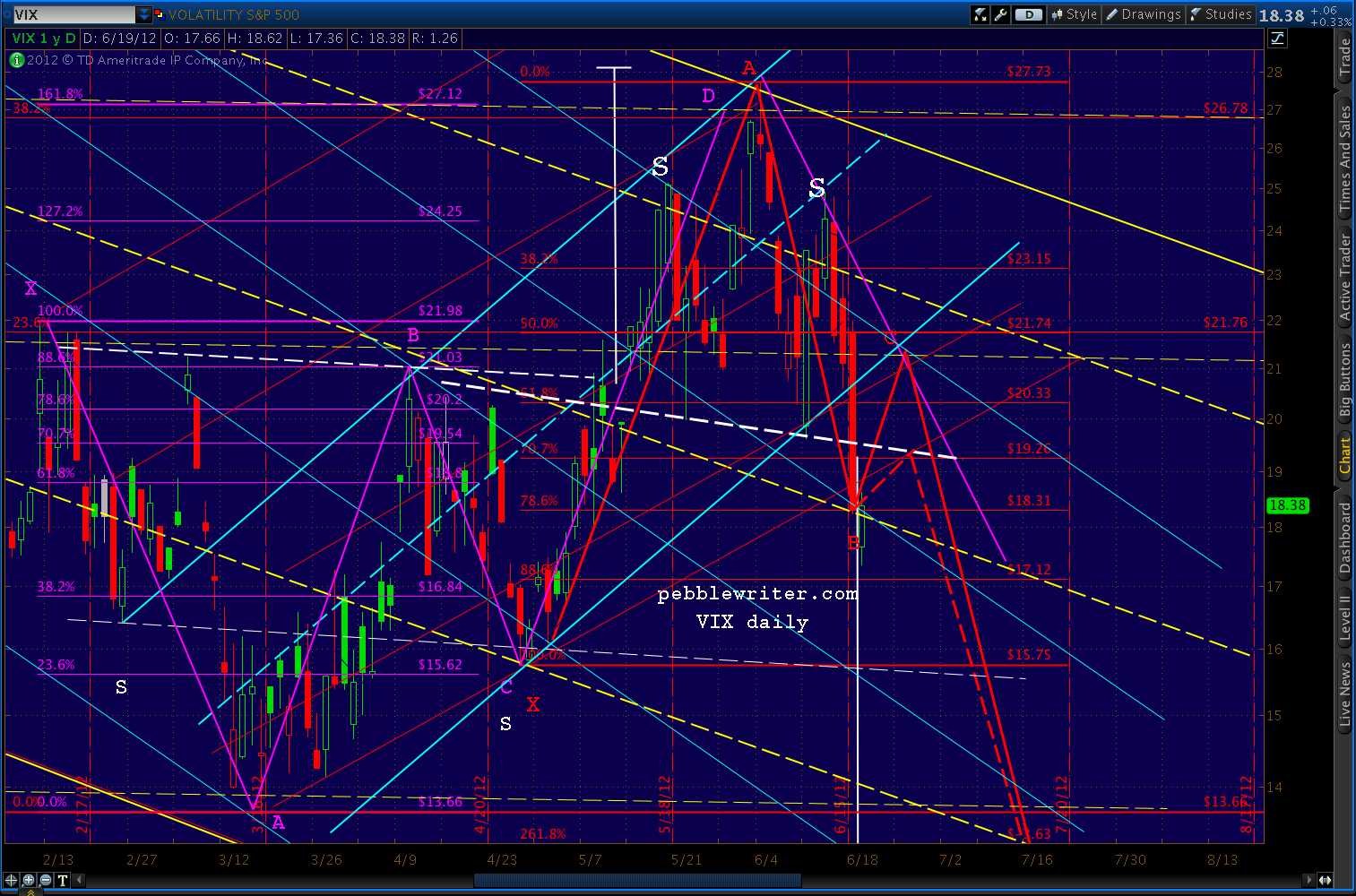 SPX nearly stopped on a dime earlier today, putting in a high of 1363.46 versus the .618 retracement (from 1422-1266) of 1362.93.