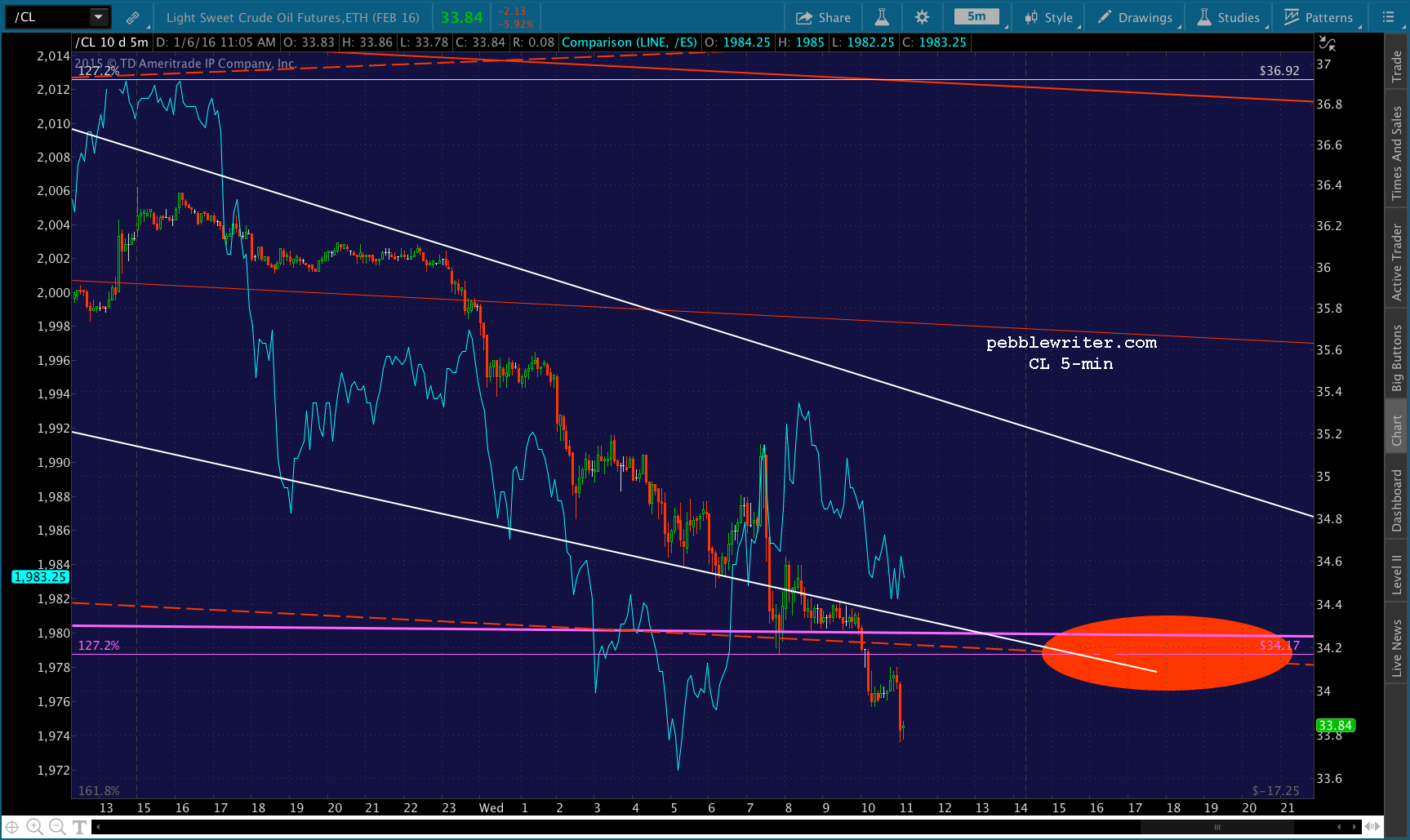 This is pretty fascinating. CL just pushed below 34.17 and USDJPY just plunged below the TL that’s been propping it up all day. But, SPX has so far refused to play along.
