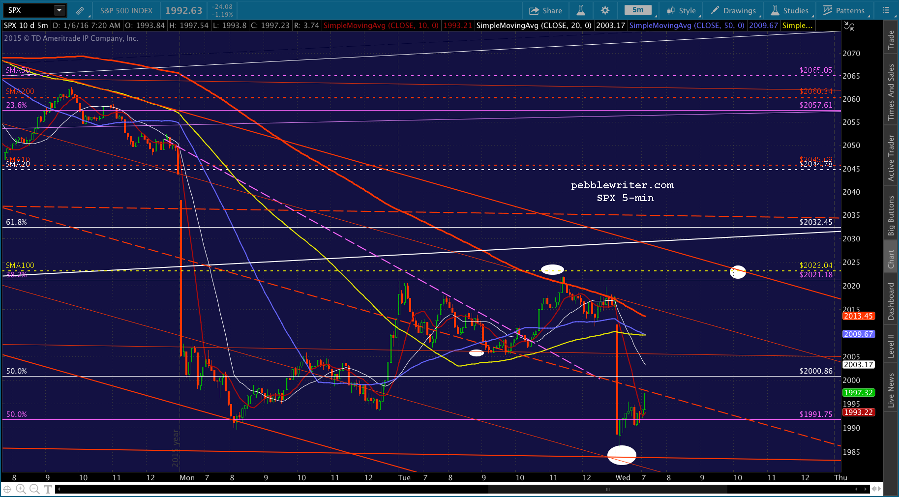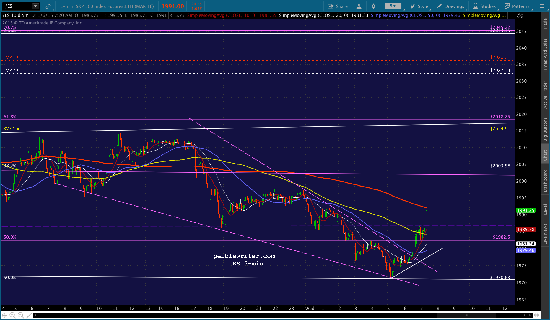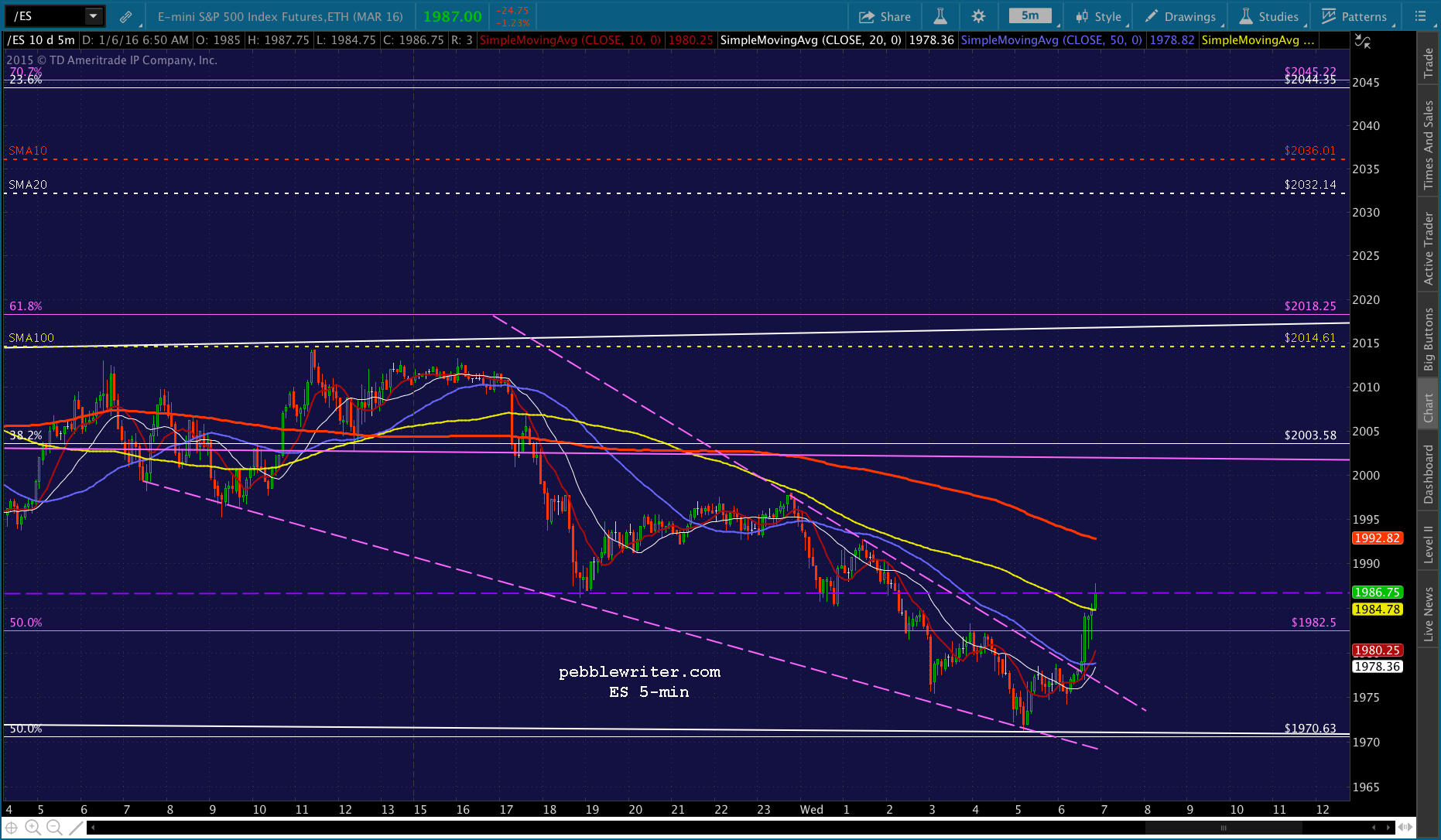 What’s it going to take? My concern is that they’ll prop it up through the rest of the session, and bag 1983 in the morning on another gap lower. If it pops up through the blue SMA5 50 at 1995ish, it’s probably going to the SMA5 100 at 2002.66.