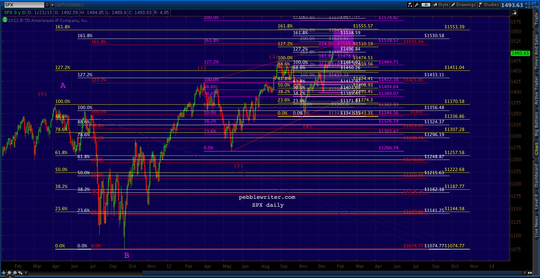And, there’s also a purple 1.618 extension (set up by the 1422 – 1266 decline) at 1518.57. Again, this is close enough to be considered significant.
