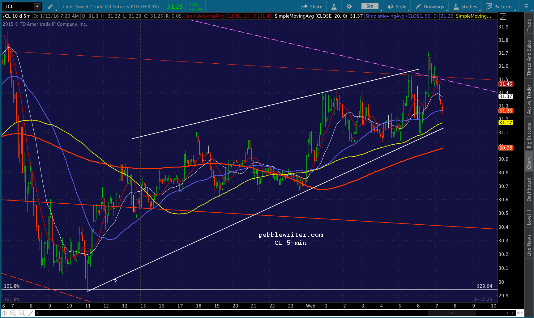 Note that CL is back below the red channel bottom at the moment — even backtested it.